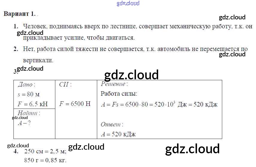 самостоятельная работа / ср-№55. механическая работа. единицы работы / вариант №1