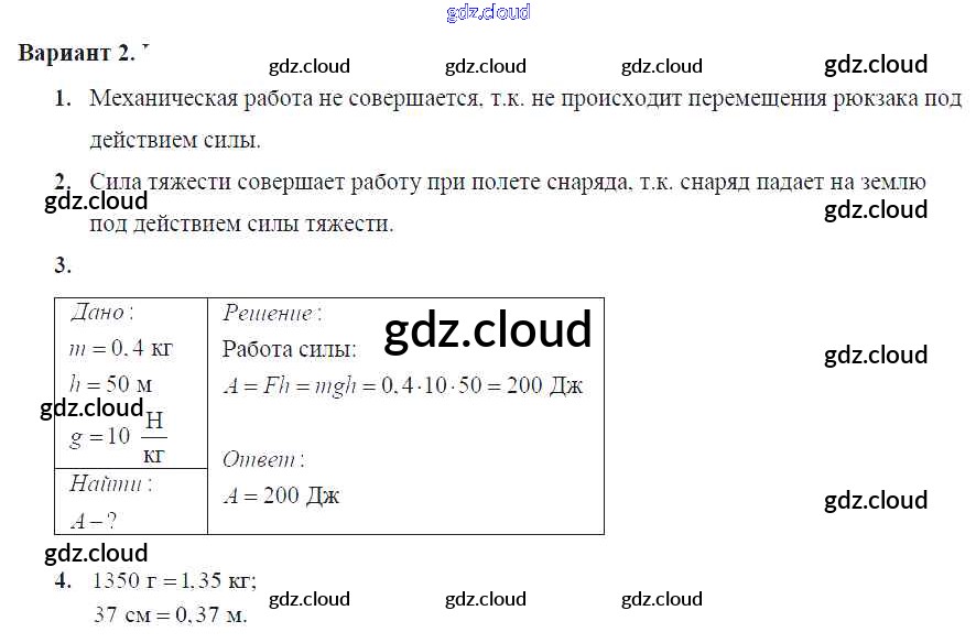самостоятельная работа / ср-№55. механическая работа. единицы работы / вариант №2