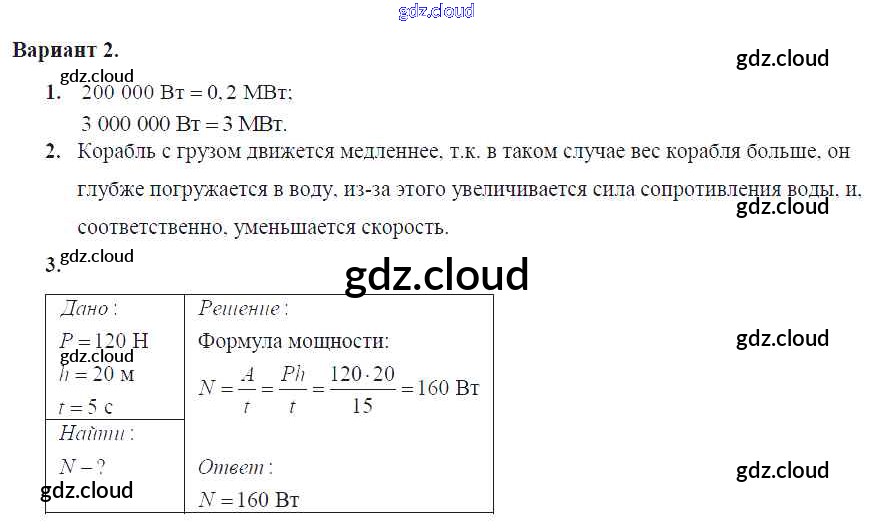 самостоятельная работа / ср-№56. мощность. единицы мощности / вариант №2