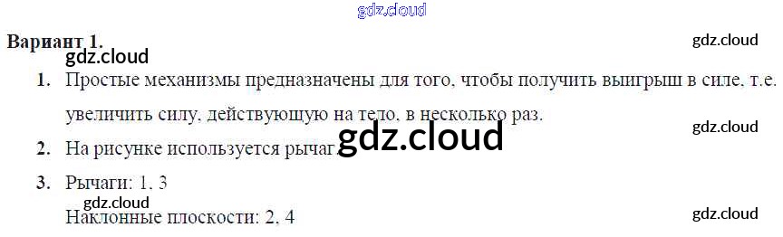 СР-№57. Простые механизмы Ответы к самостоятельным работам по Физике 7 класс Самостоятельные и контрольные работы Марон Вертикаль Дрофа