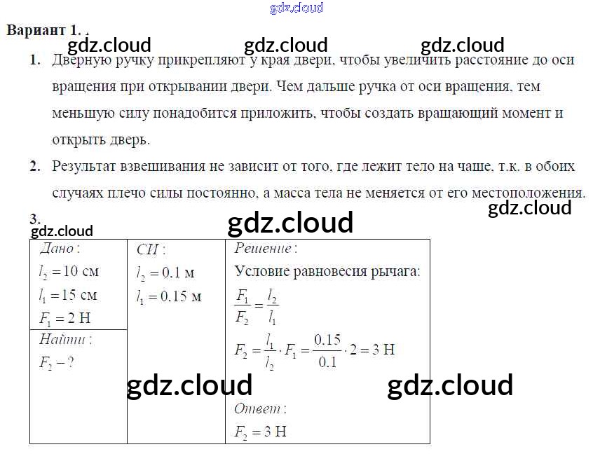 самостоятельная работа / ср-№58. рычаги. равновесие сил на рычаге / вариант №1