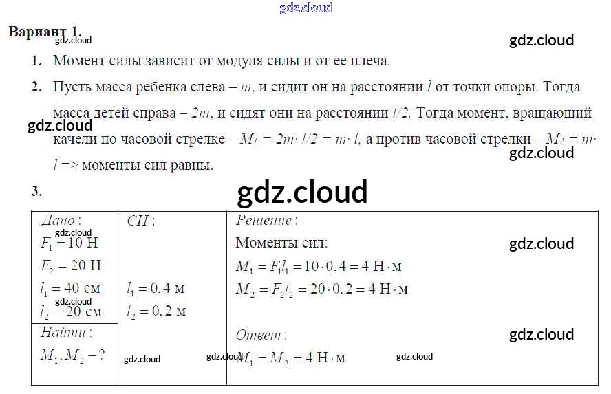 СР-№59. Момент силы Ответы к самостоятельным работам по Физике 7 класс Самостоятельные и контрольные работы Марон Вертикаль Дрофа