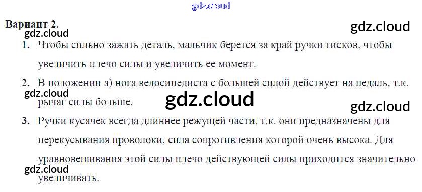 СР-№60. Рычаги в технике, быту и природе Ответы к самостоятельным работам по Физике 7 класс Самостоятельные и контрольные работы Марон Вертикаль Дрофа