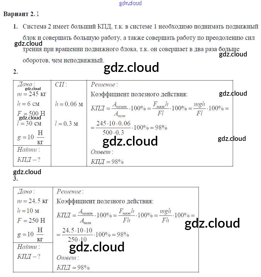 самостоятельная работа / ср-№65. коэффициент полезного действия механизма / вариант №2