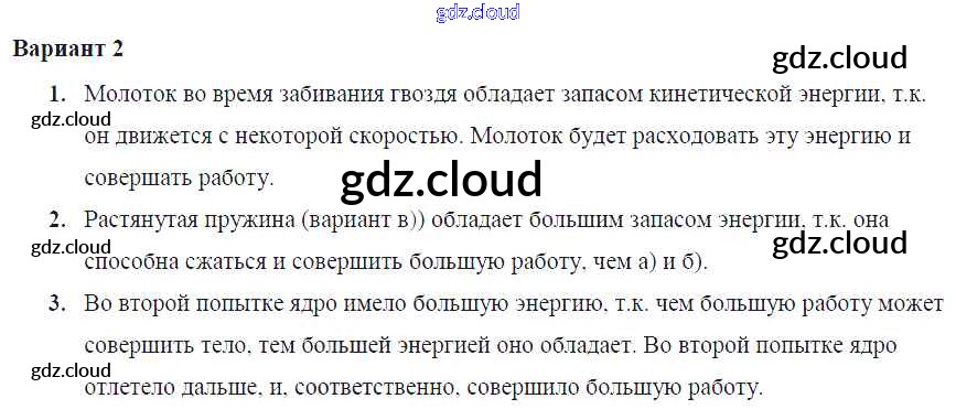 СР-№66. Энергия Ответы к самостоятельным работам по Физике 7 класс Самостоятельные и контрольные работы Марон Вертикаль Дрофа