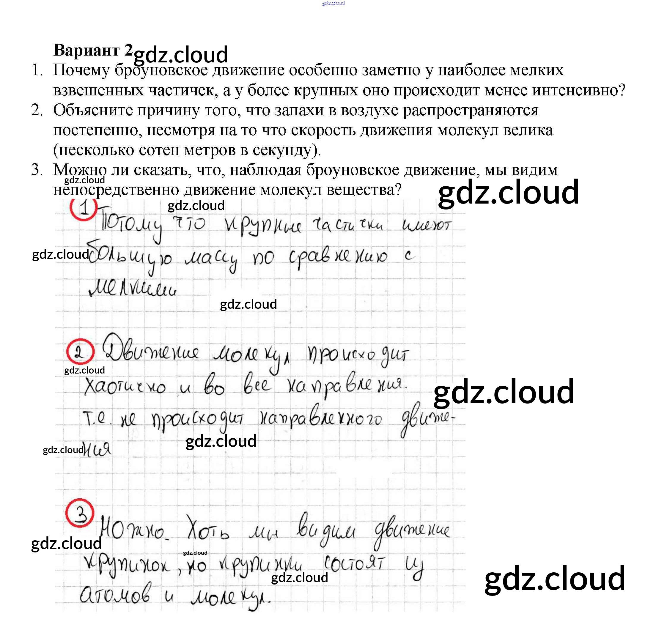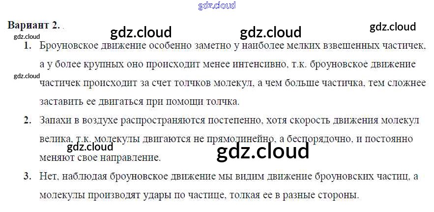СР-№9. Броуновское движение Ответы к самостоятельным работам по Физике 7 класс Самостоятельные и контрольные работы Марон Вертикаль Дрофа