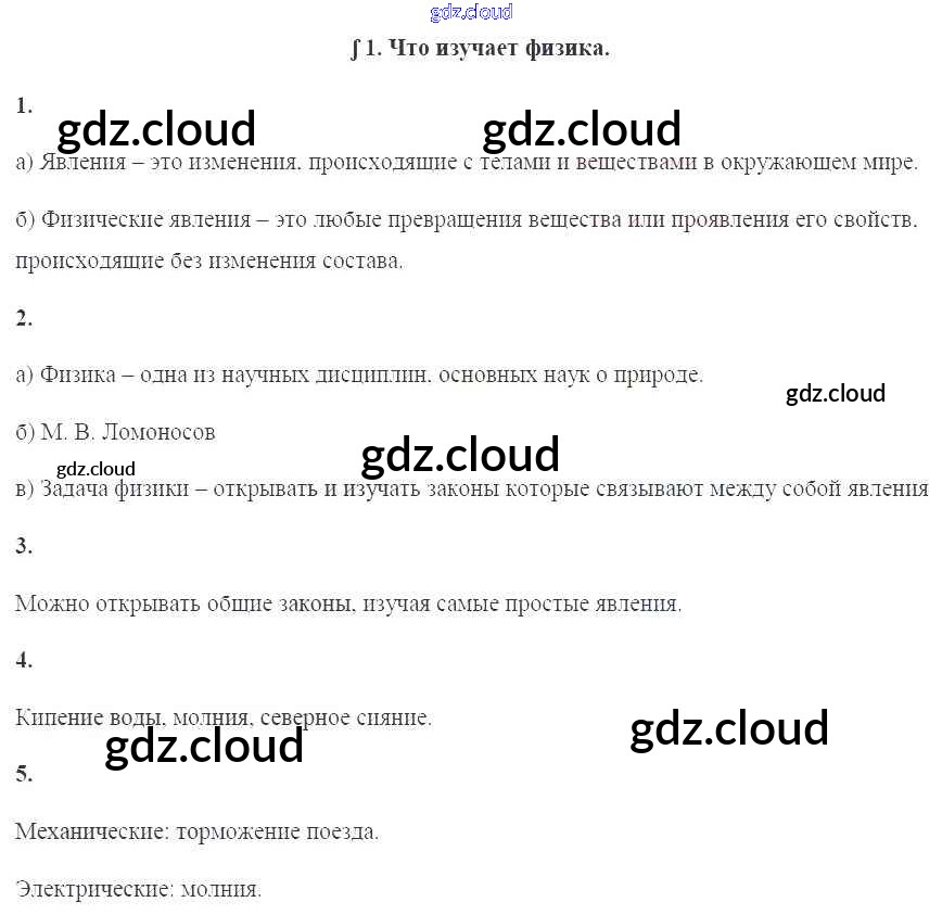Ответы к страницам по Физике 7 класс Рабочая тетрадь Перышкин УМК Экзамен