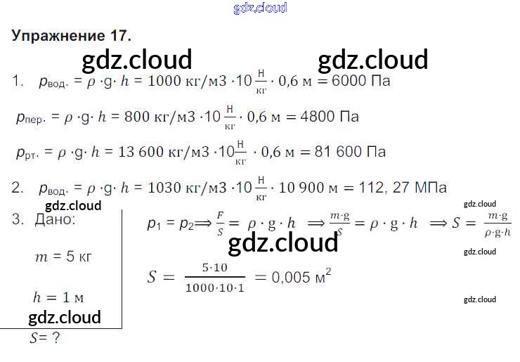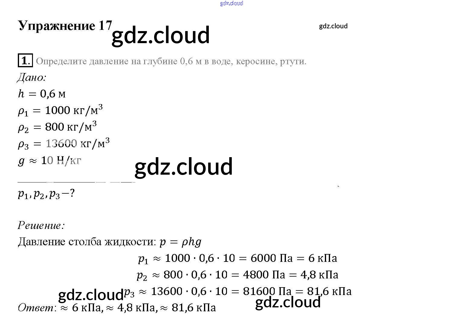 Ответ на задание 17 Учебник Физика за 7 (седьмой) класс Перышкин Вертикаль 2016