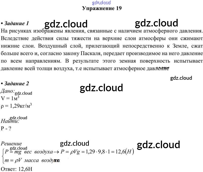 Ответ на задание 19 Учебник Физика за 7 (седьмой) класс Перышкин Вертикаль 2016