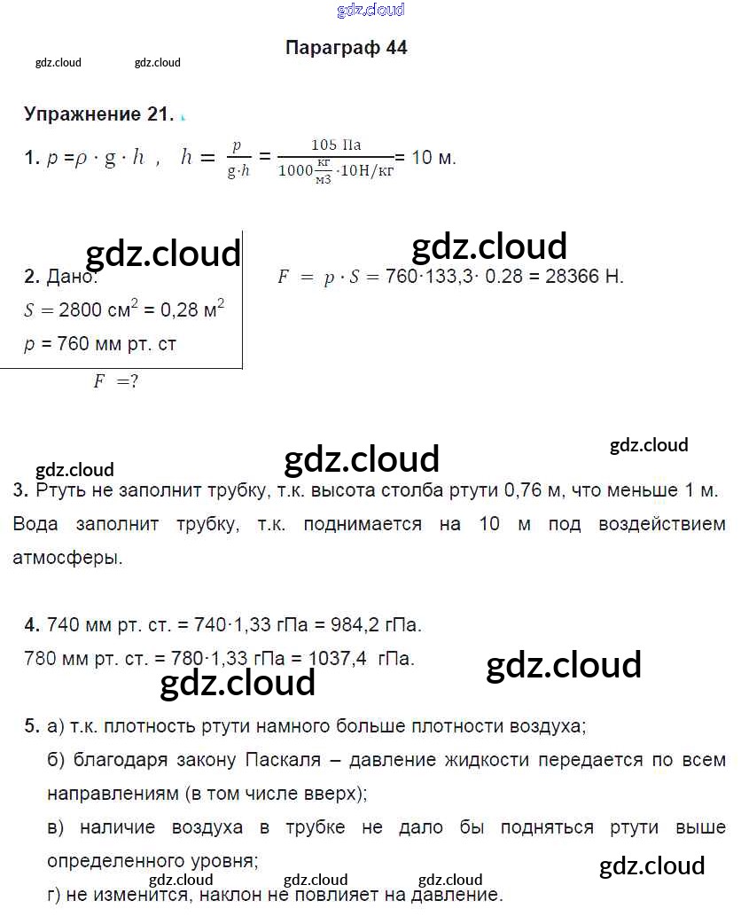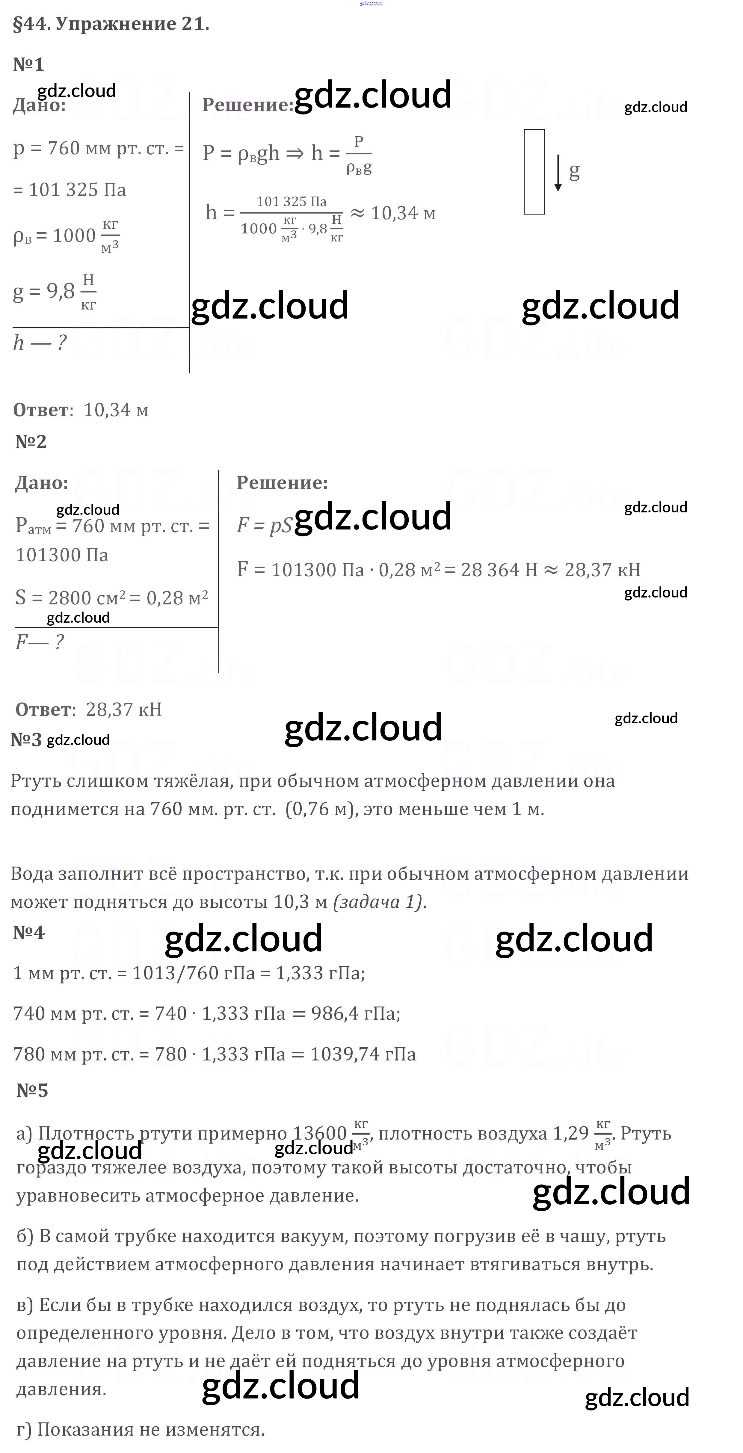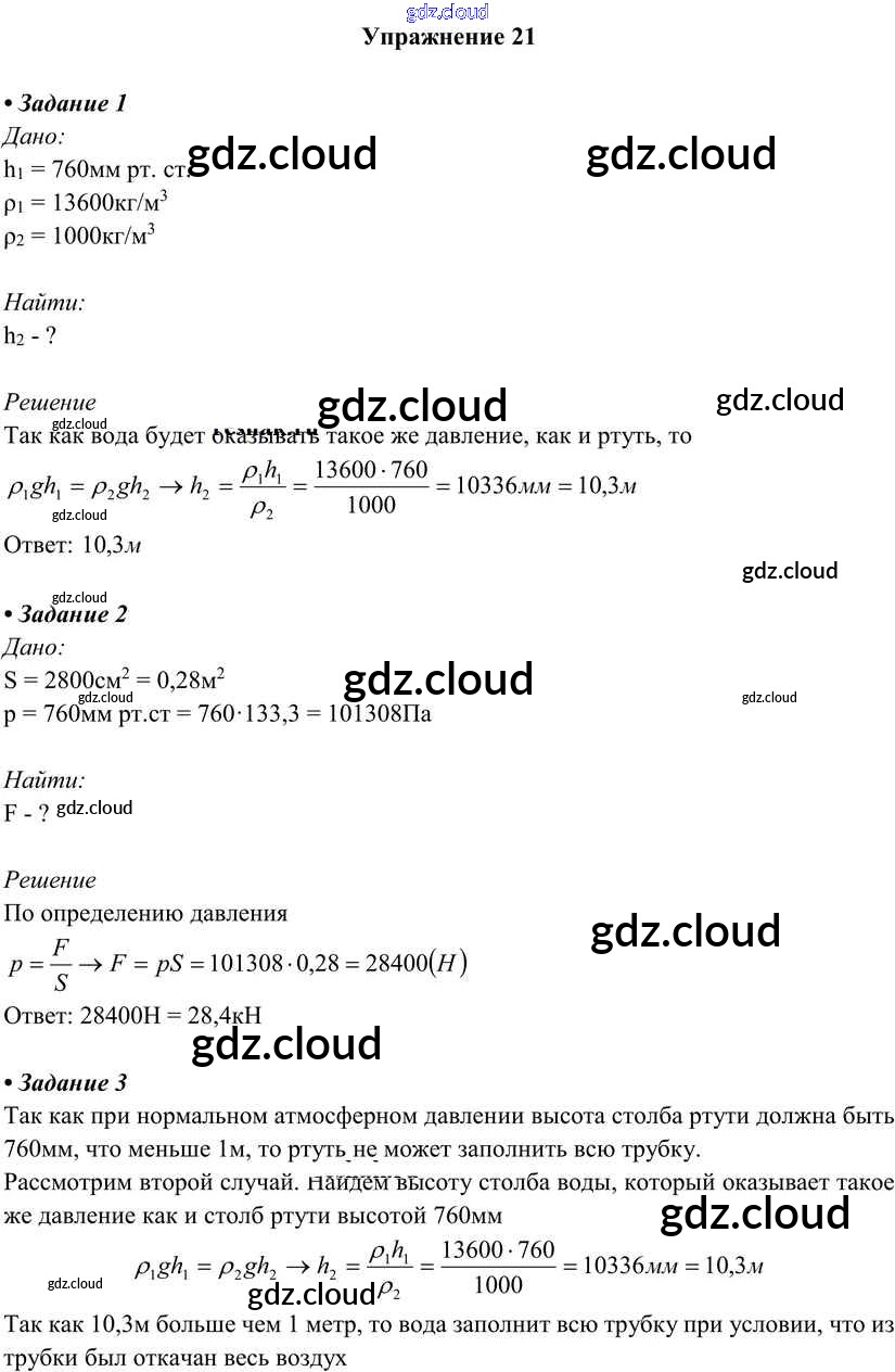Ответ на задание 21 Учебник Физика за 7 (седьмой) класс Перышкин Вертикаль 2016