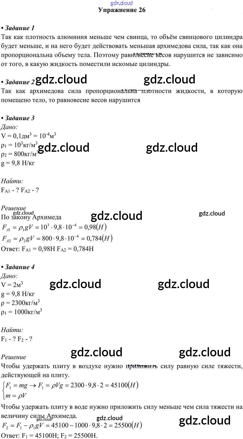 Ответ на задание 26 Учебник Физика за 7 (седьмой) класс Перышкин Вертикаль 2016