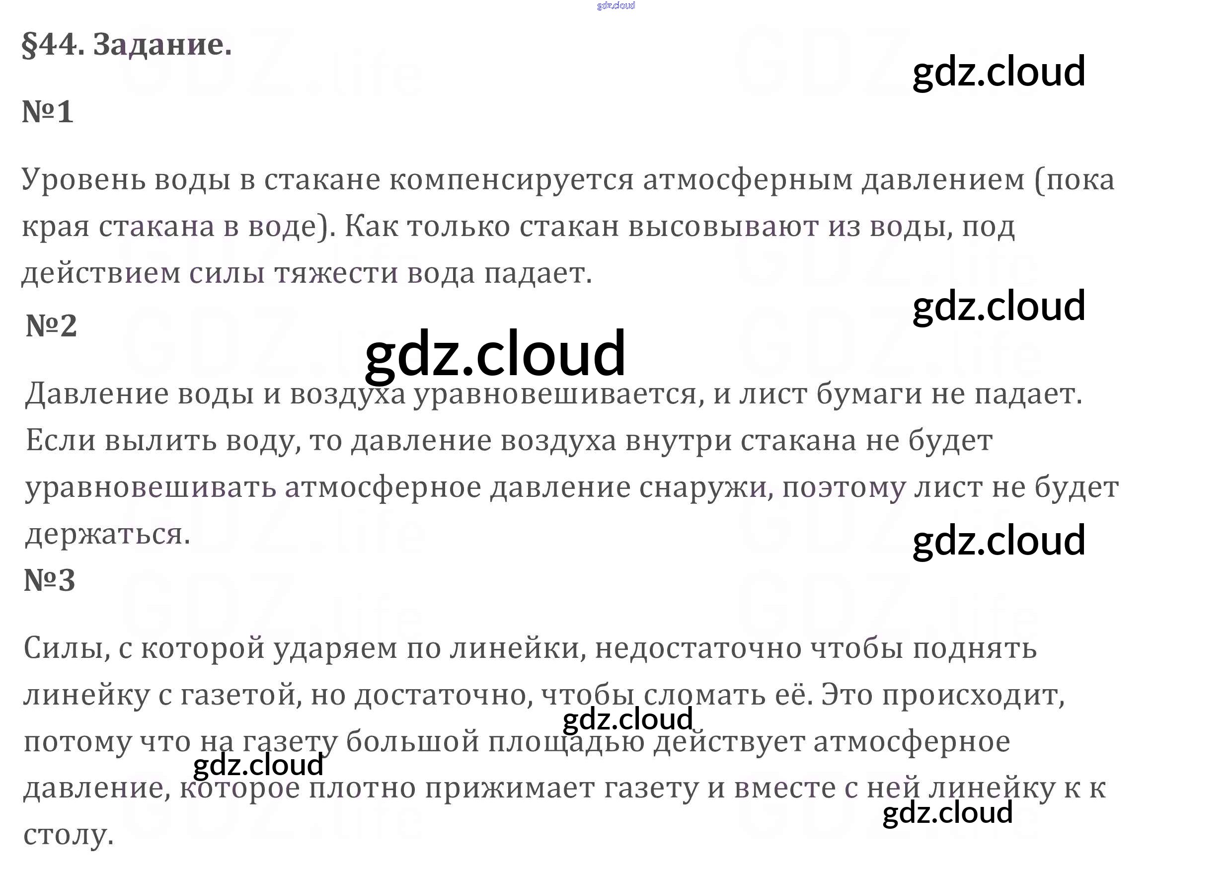 Ответ на задание §44 Учебник Физика за 7 (седьмой) класс Перышкин Вертикаль 2016