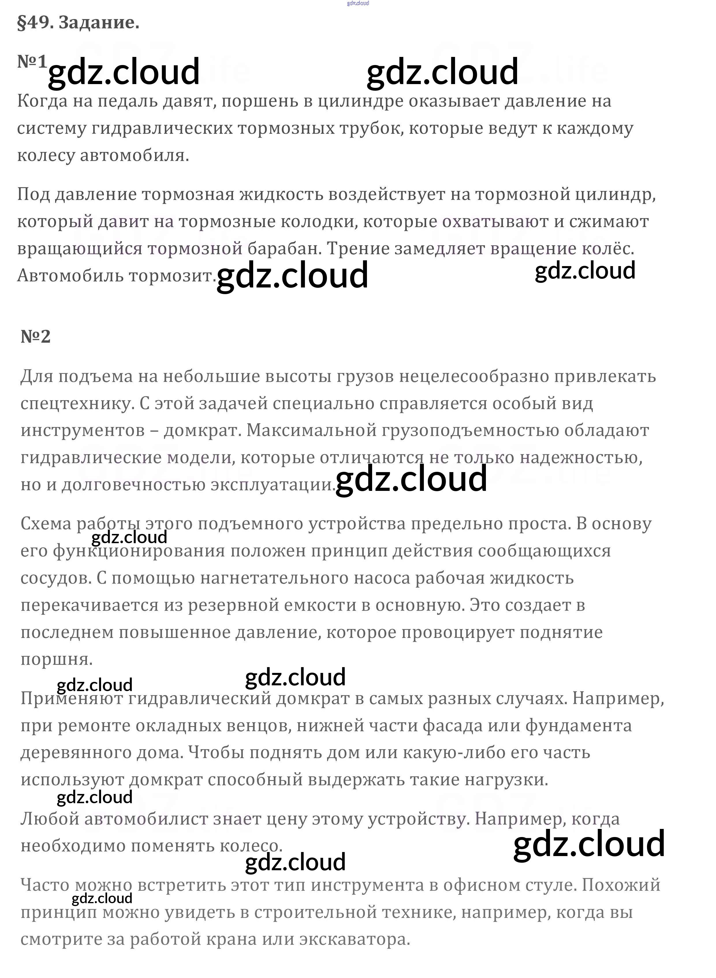 Ответ на задание §49 Учебник Физика за 7 (седьмой) класс Перышкин Вертикаль 2016