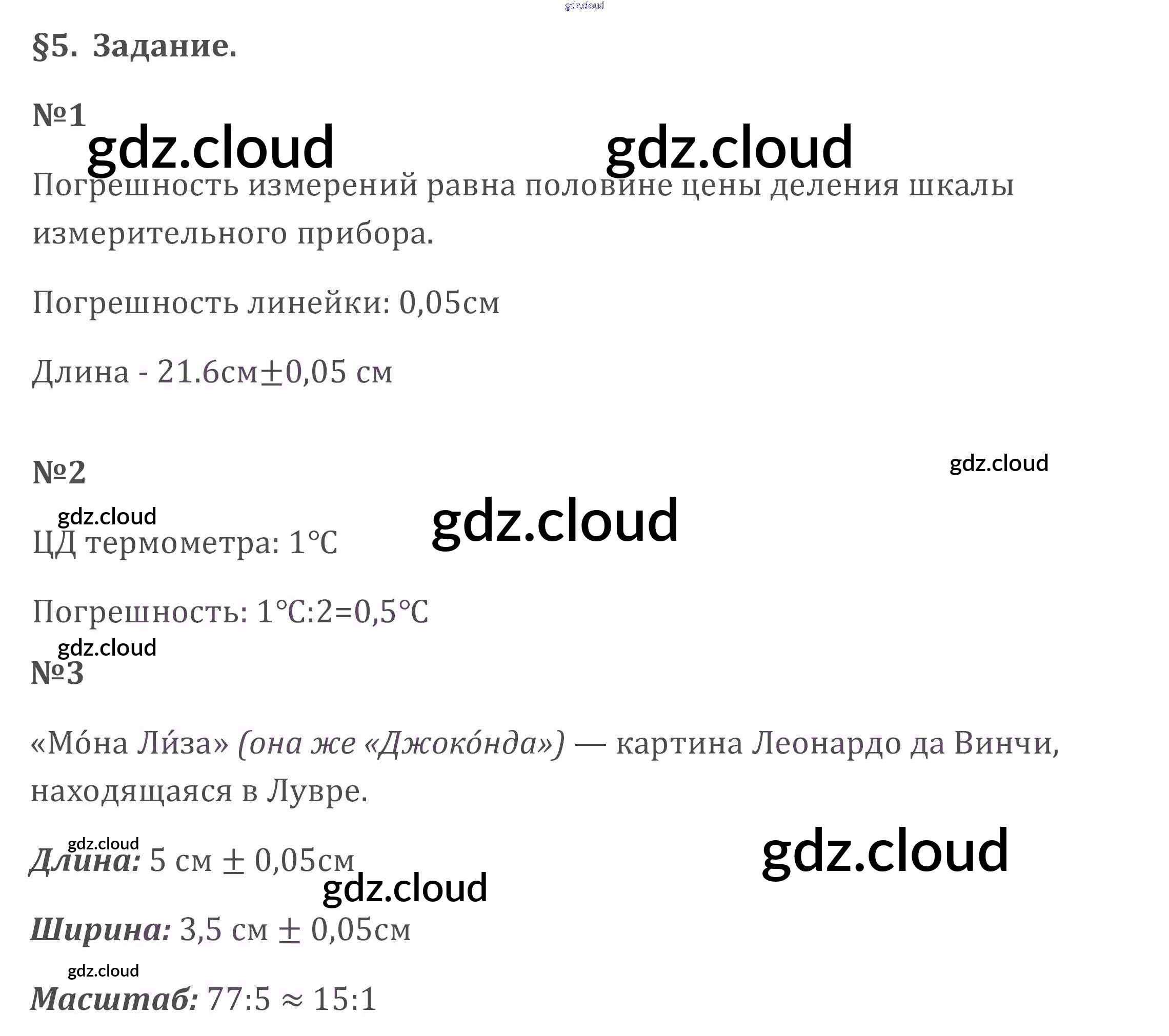 Ответ на задание §5 Учебник Физика за 7 (седьмой) класс Перышкин Вертикаль 2016