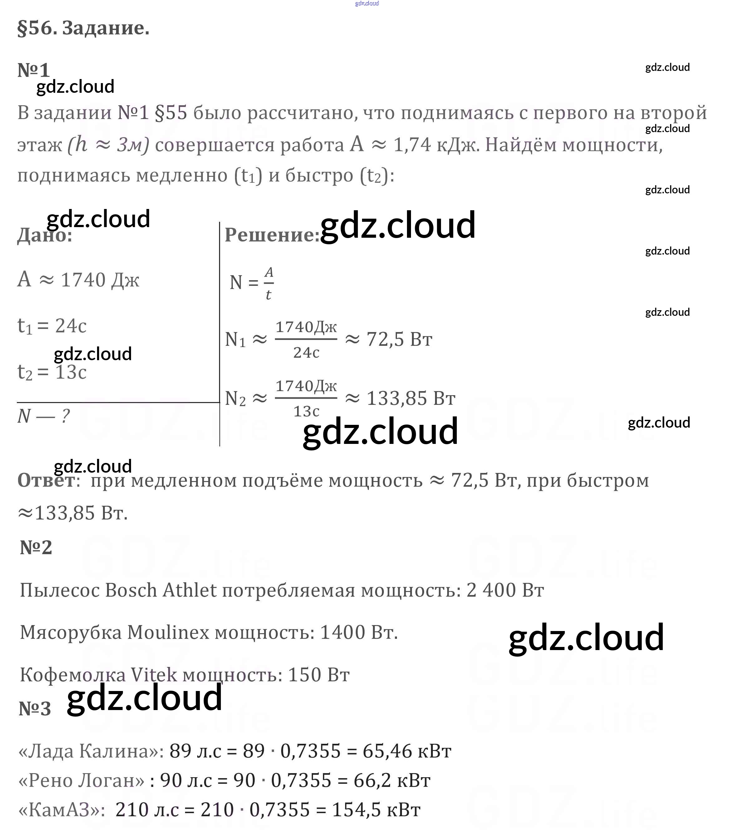 Ответ на задание §56 Учебник Физика за 7 (седьмой) класс Перышкин Вертикаль 2016