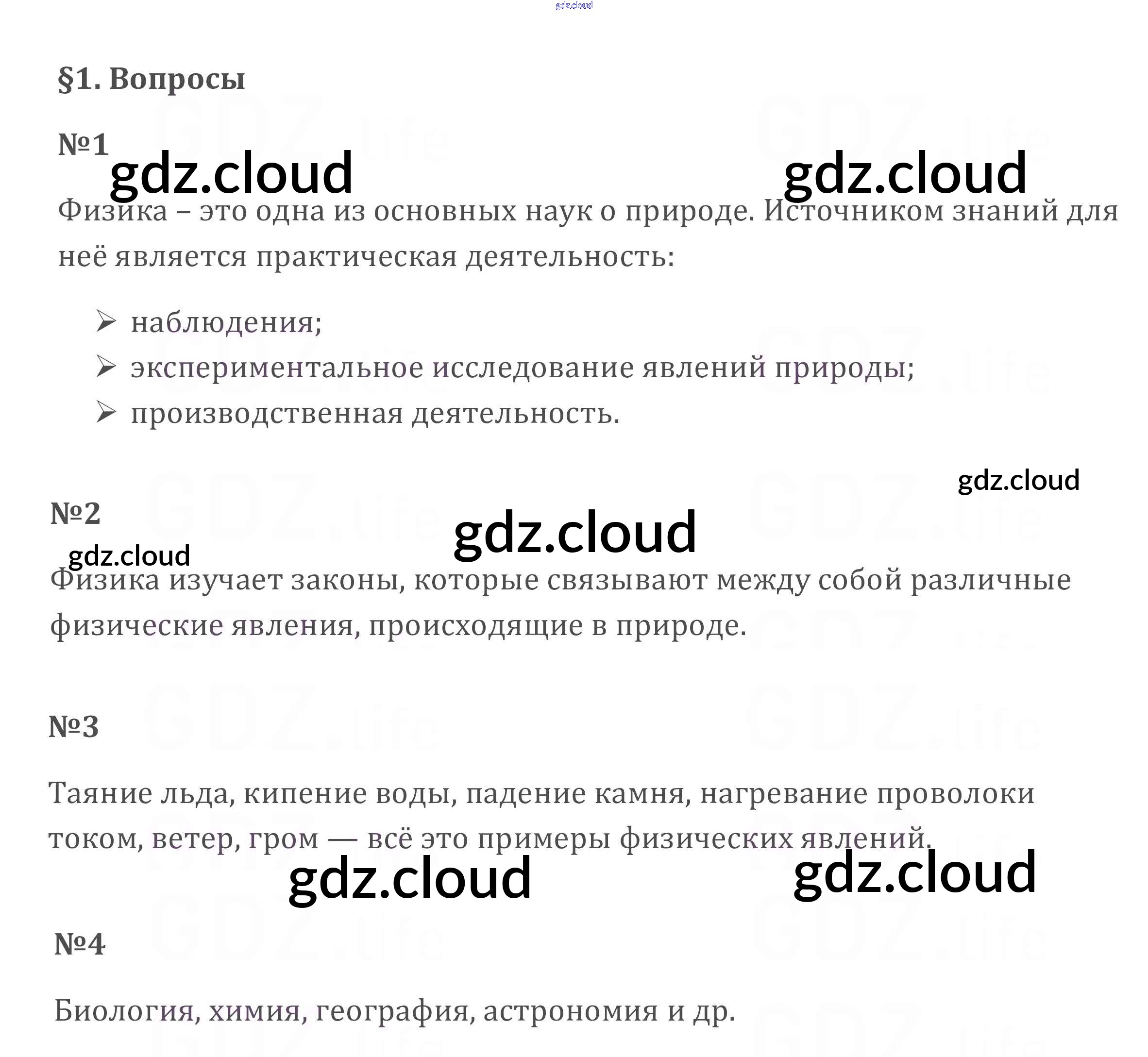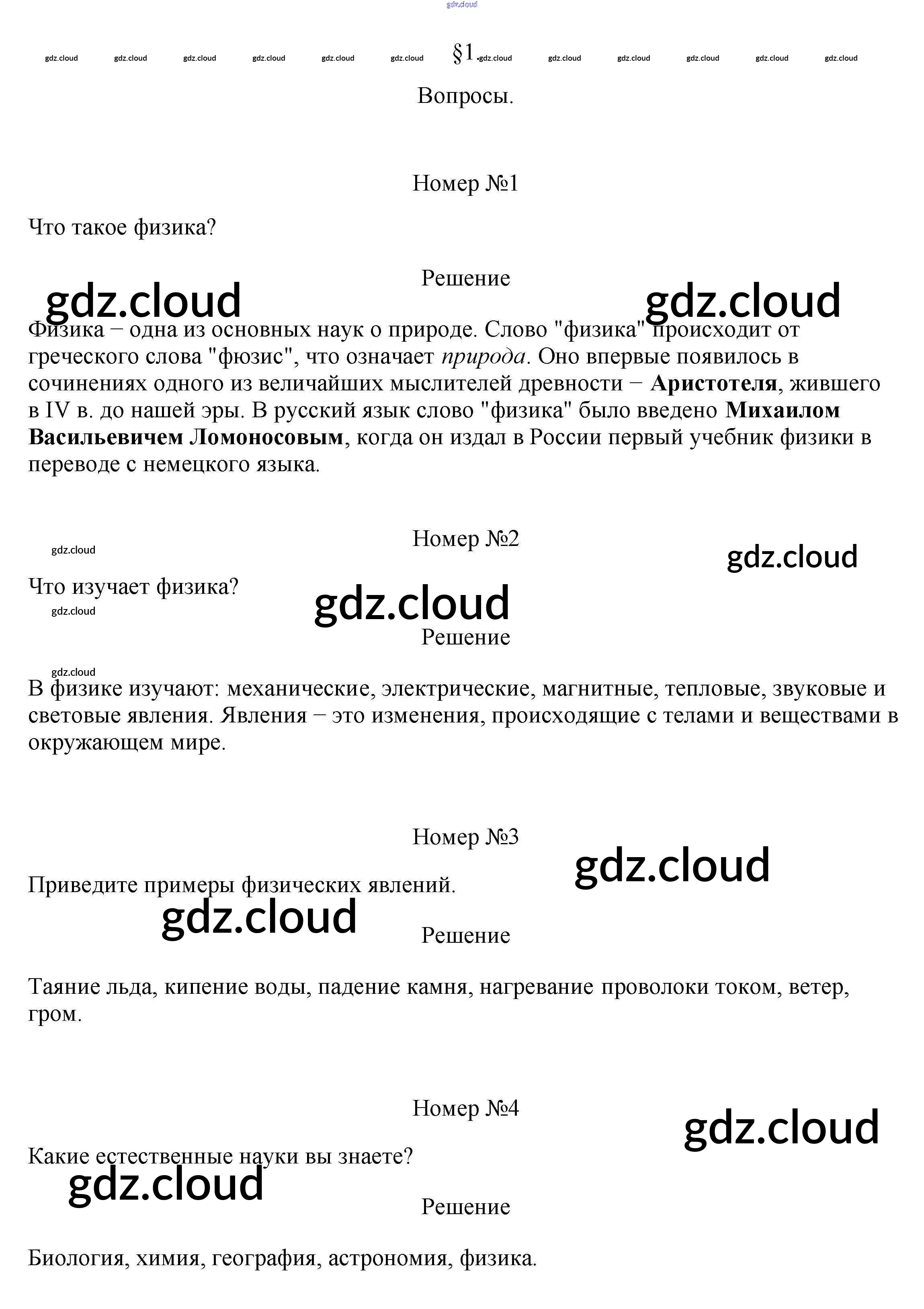 Ответ на задание §1 Учебник Физика за 7 (седьмой) класс Перышкин Вертикаль 2016