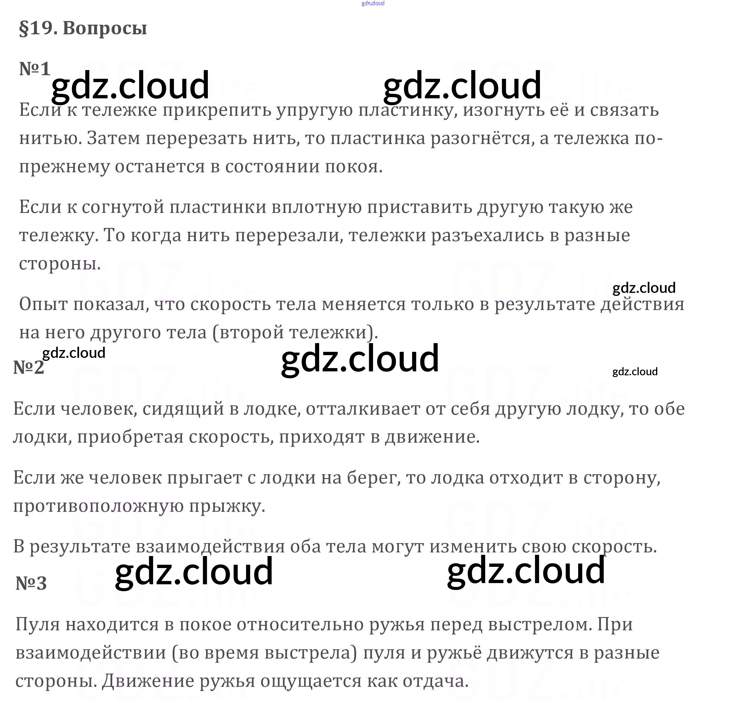 Ответ на задание §19 Учебник Физика за 7 (седьмой) класс Перышкин Вертикаль 2016