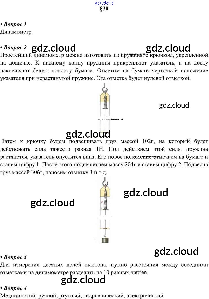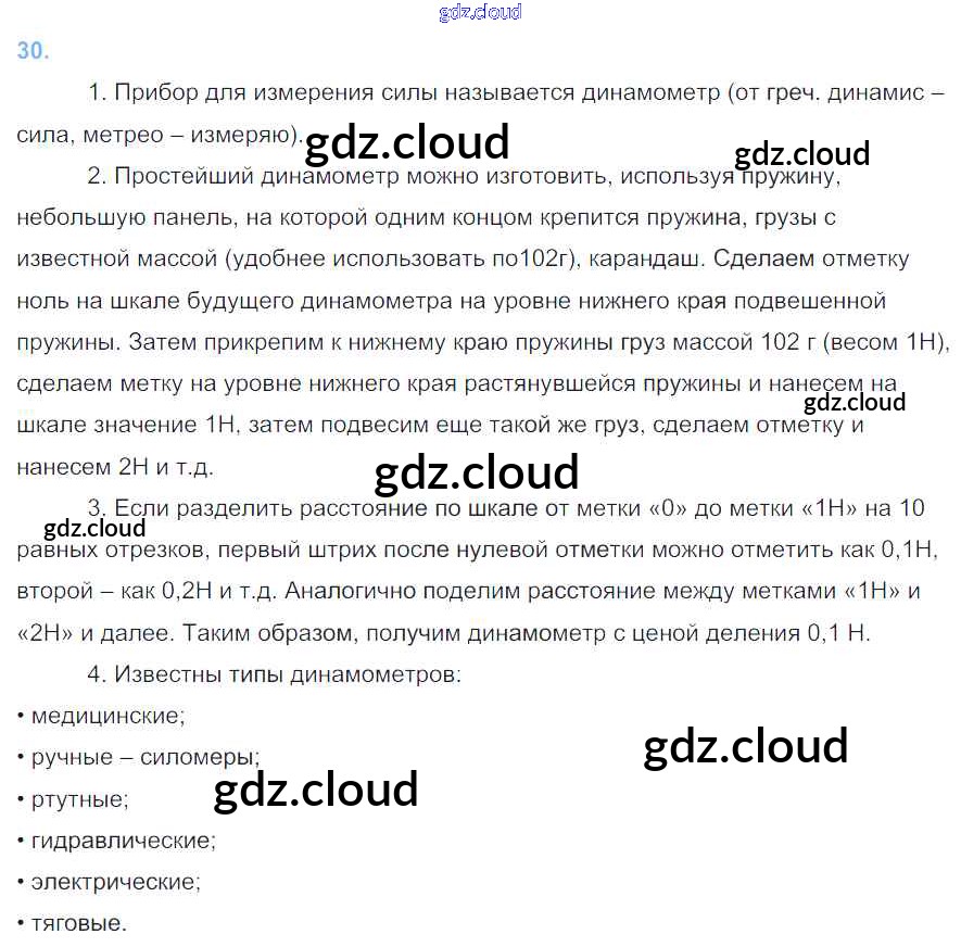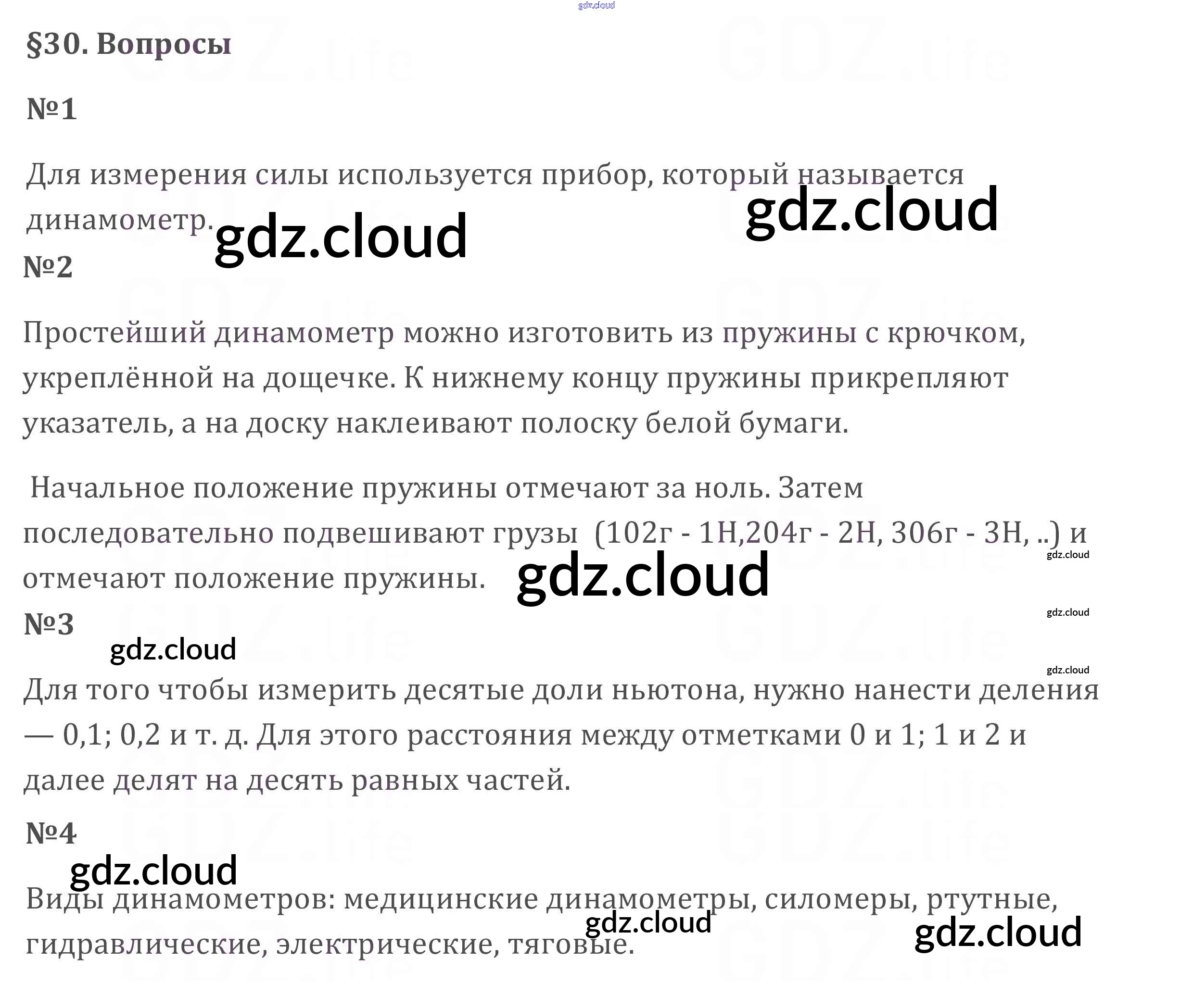 Ответ на задание §30 Учебник Физика за 7 (седьмой) класс Перышкин Вертикаль 2016