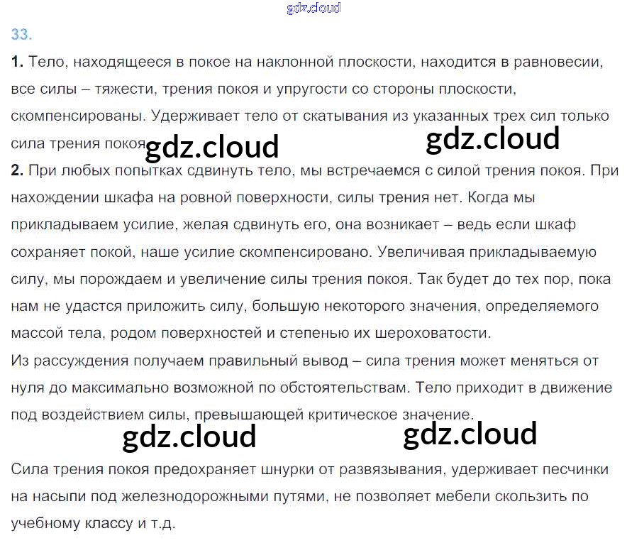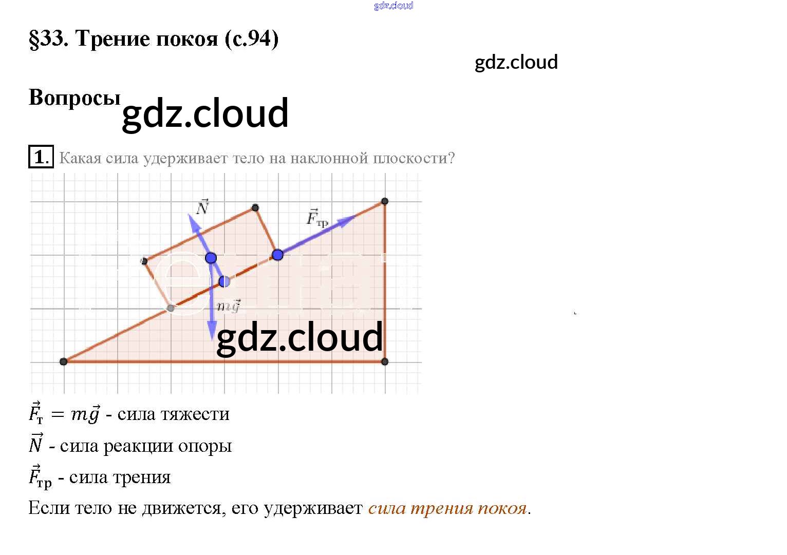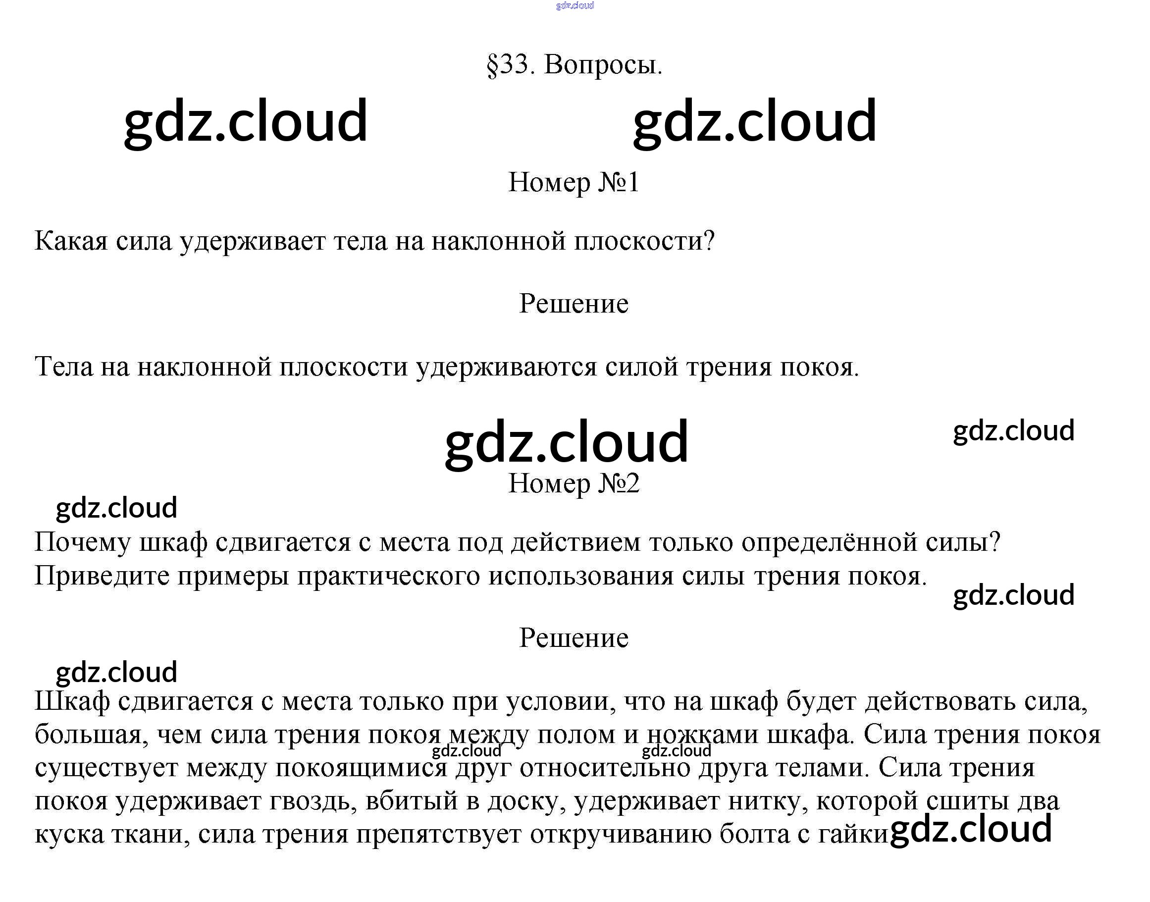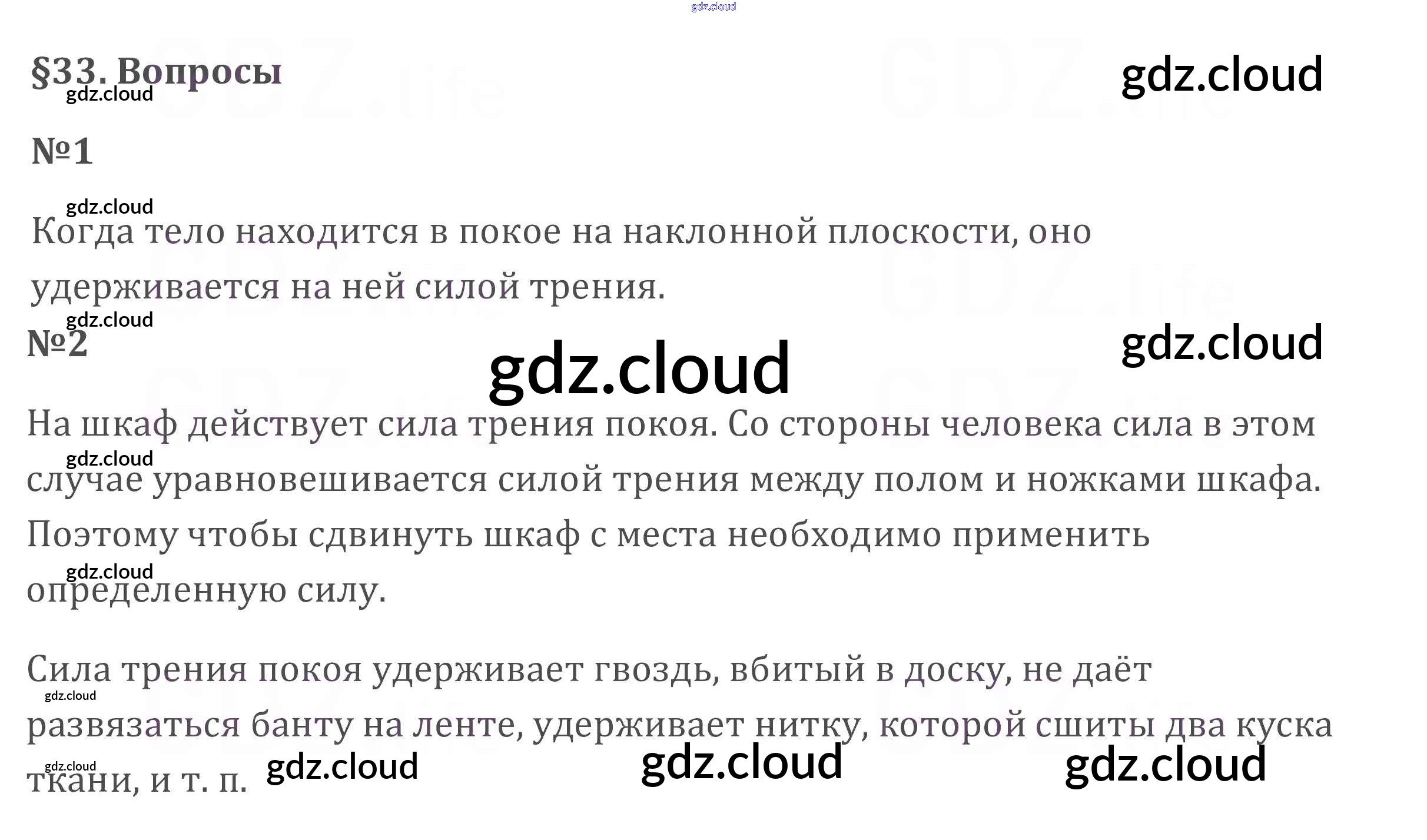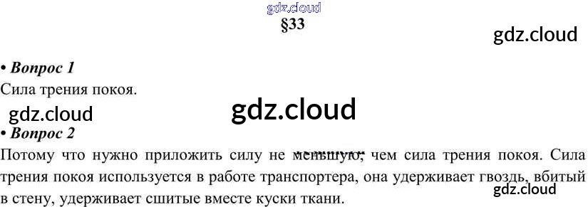 Ответ на задание §33 Учебник Физика за 7 (седьмой) класс Перышкин Вертикаль 2016