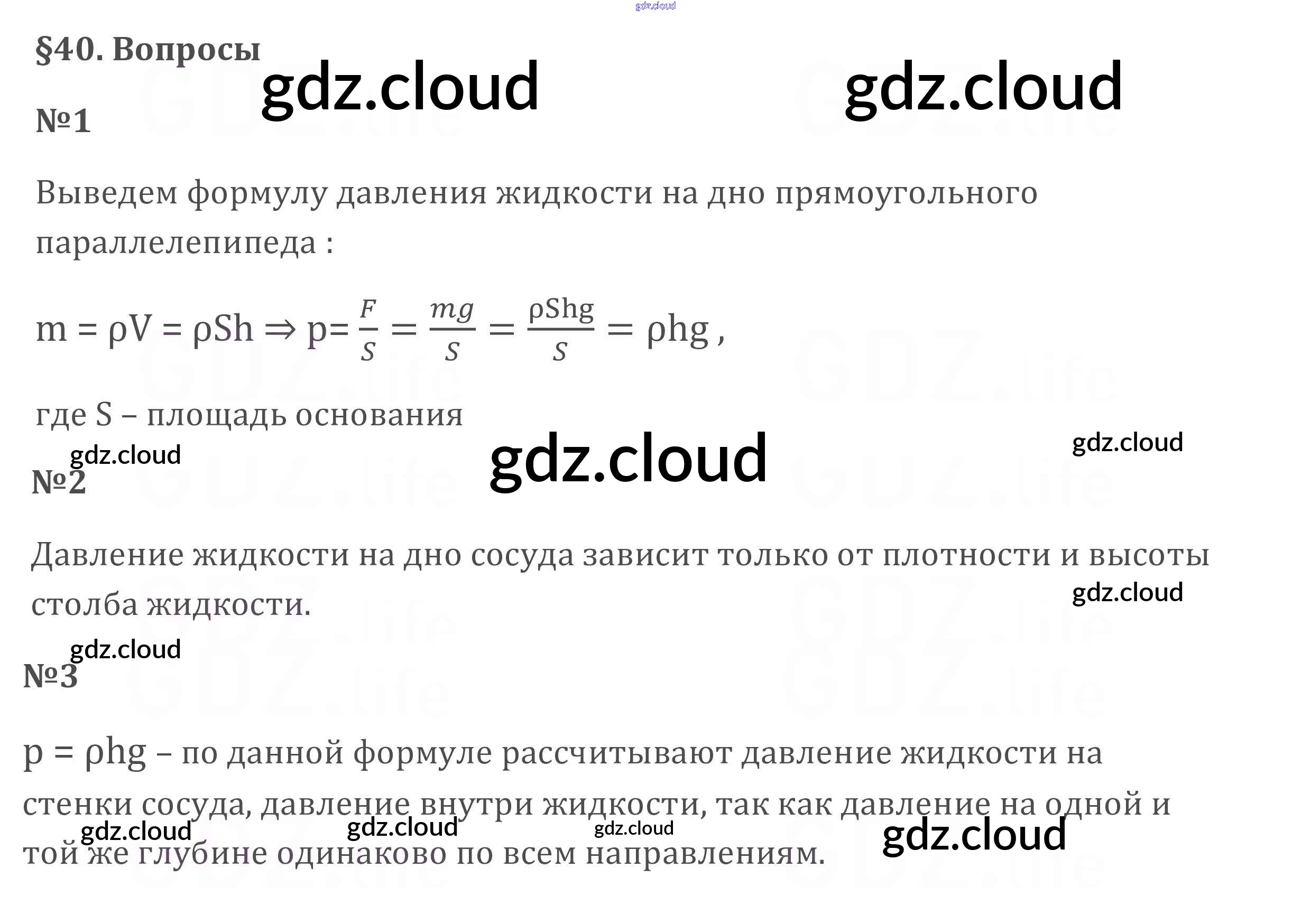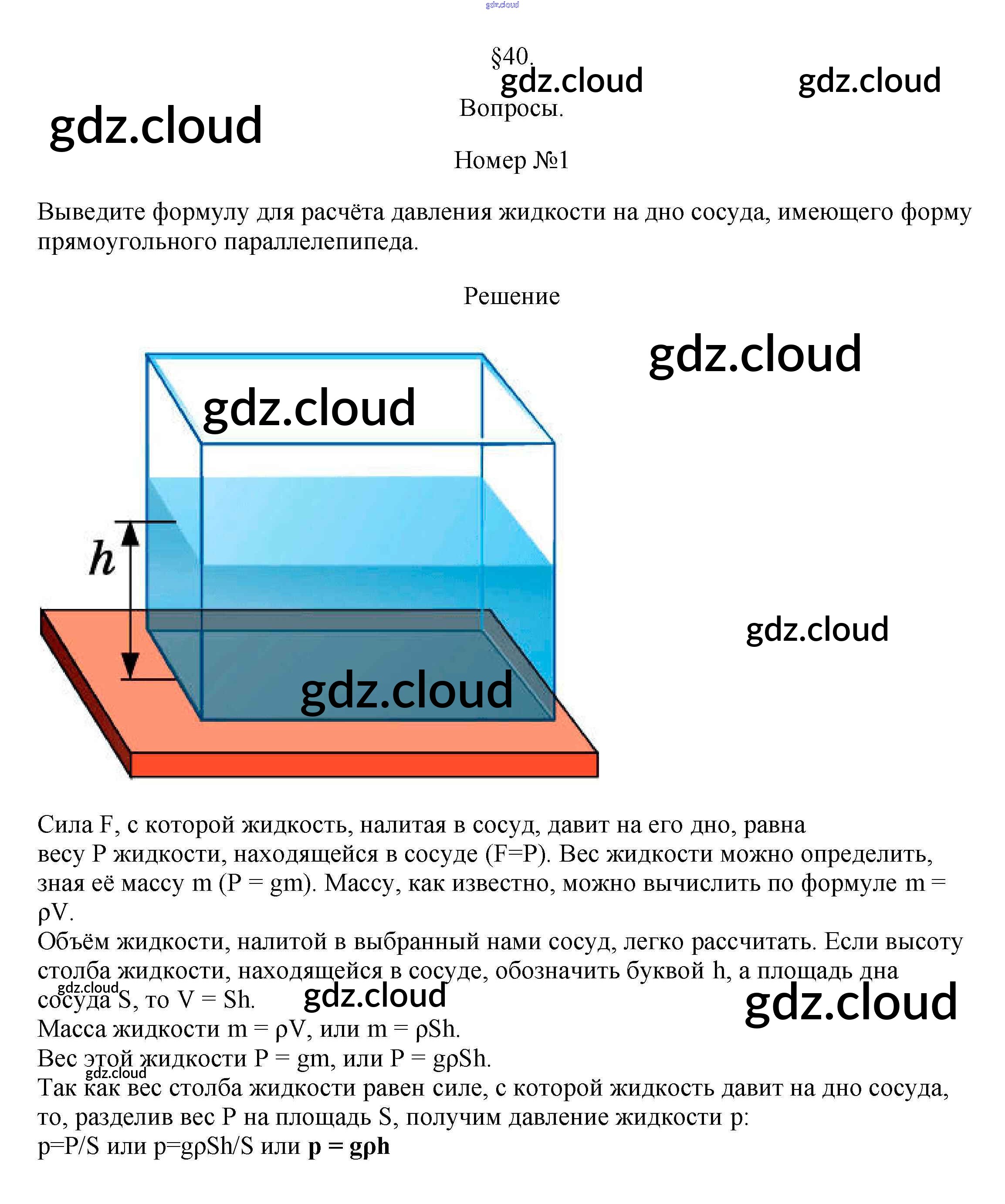 Ответ на задание §40 Учебник Физика за 7 (седьмой) класс Перышкин Вертикаль 2016