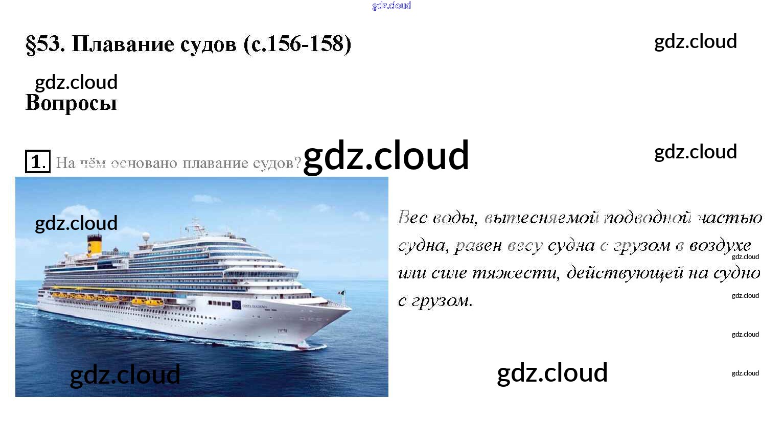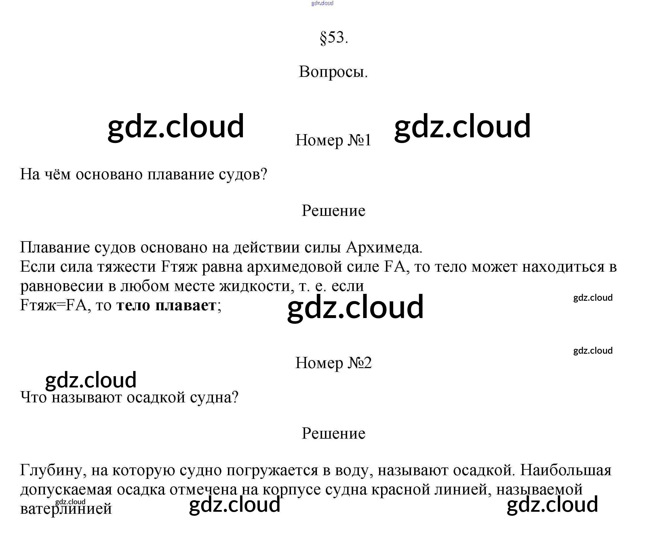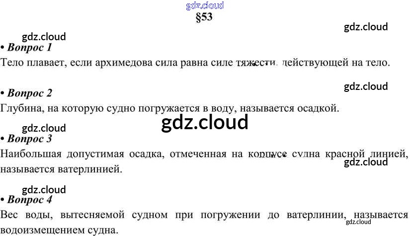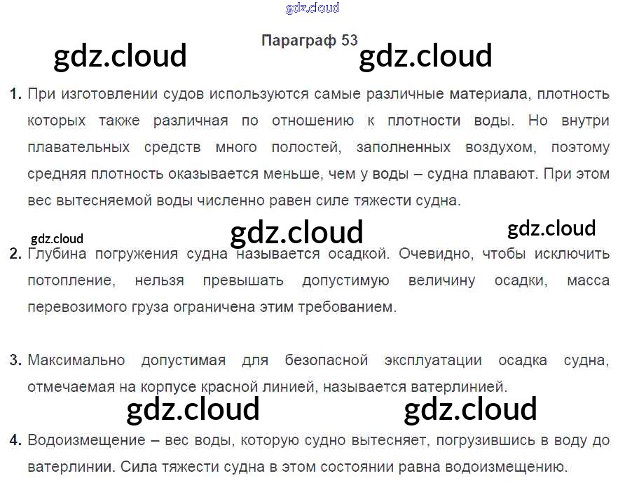 Ответ на задание §53 Учебник Физика за 7 (седьмой) класс Перышкин Вертикаль 2016