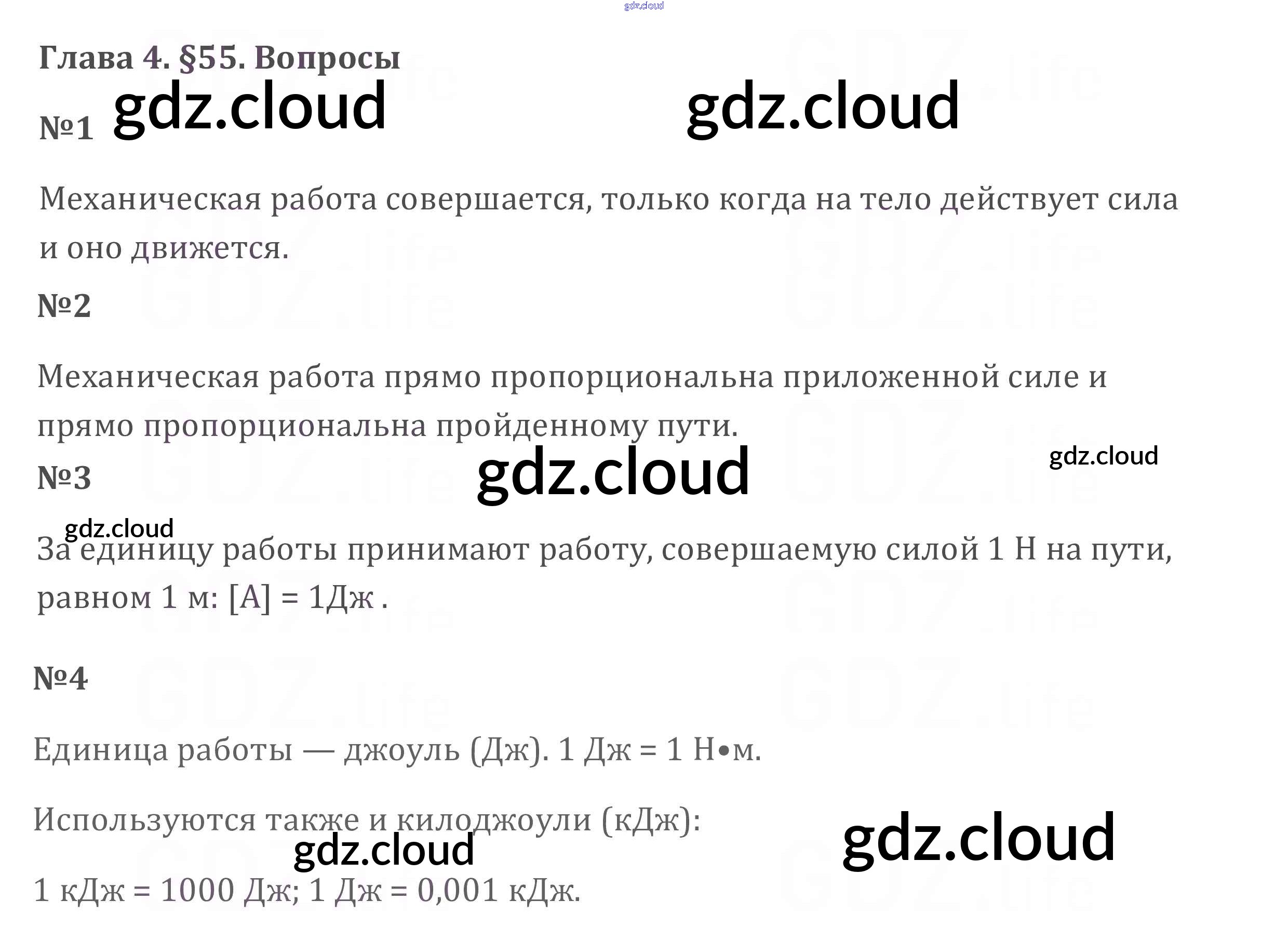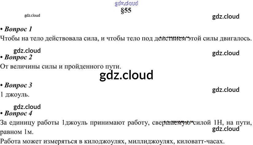 Ответ на задание §55 Учебник Физика за 7 (седьмой) класс Перышкин Вертикаль 2016