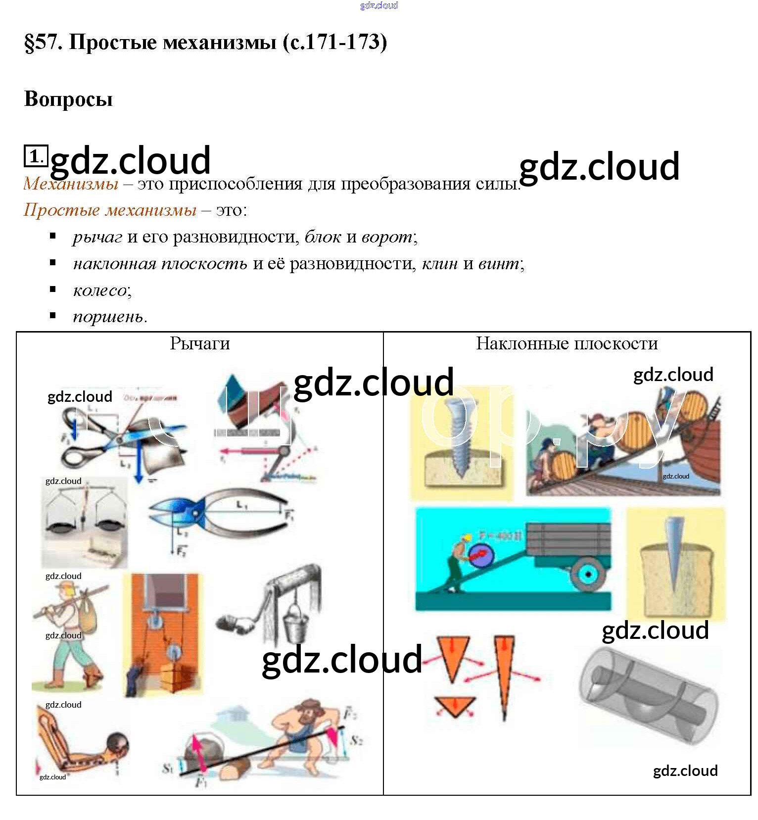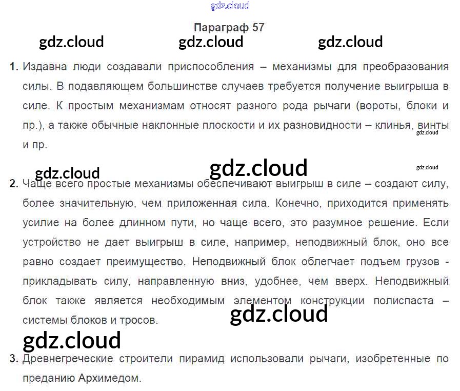 Ответ на задание §57 Учебник Физика за 7 (седьмой) класс Перышкин Вертикаль 2016