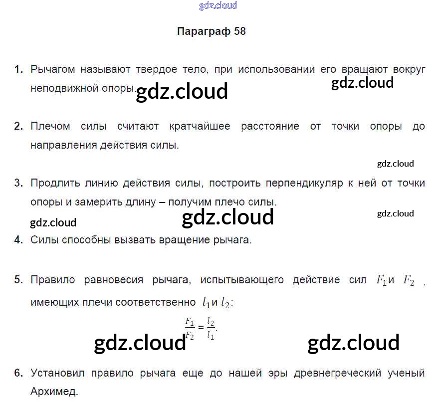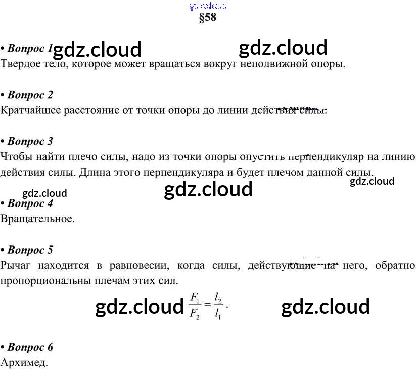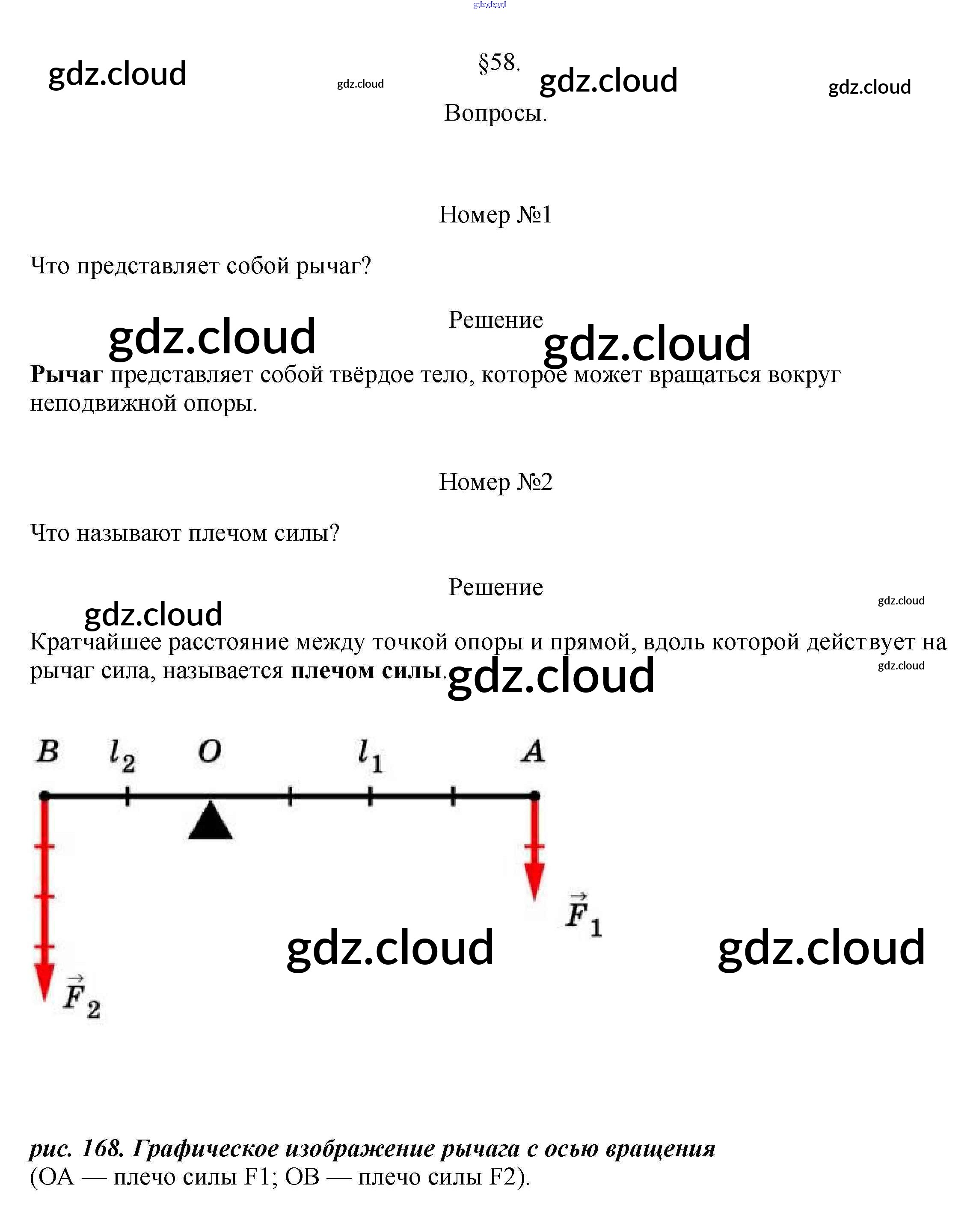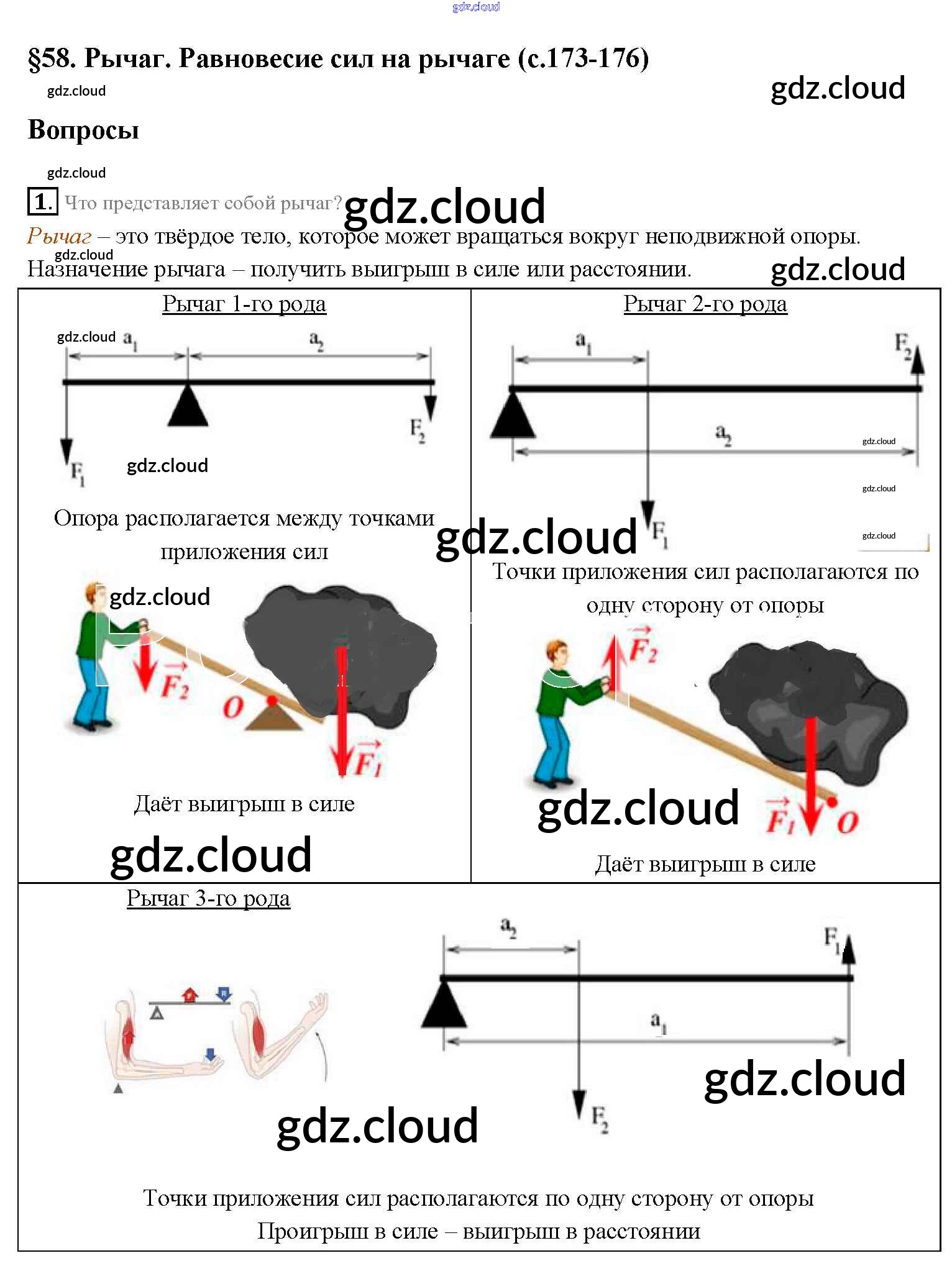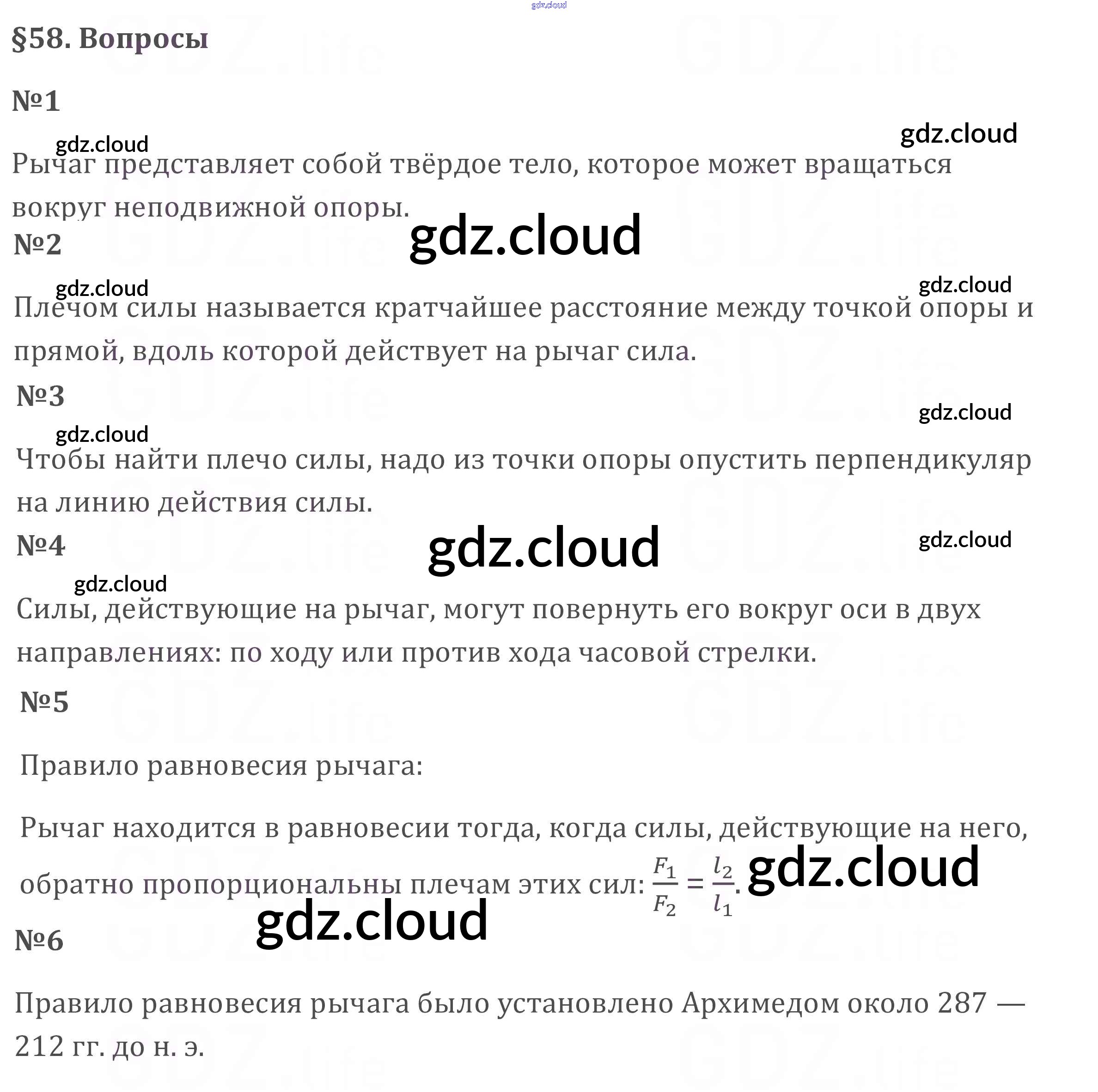 Ответ на задание §58 Учебник Физика за 7 (седьмой) класс Перышкин Вертикаль 2016