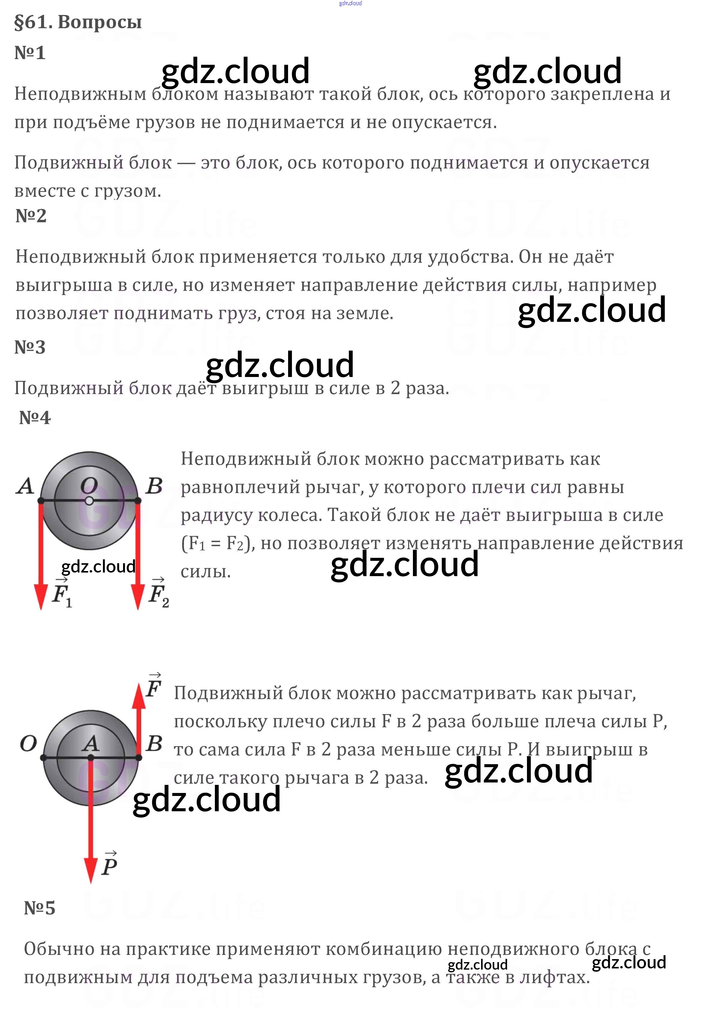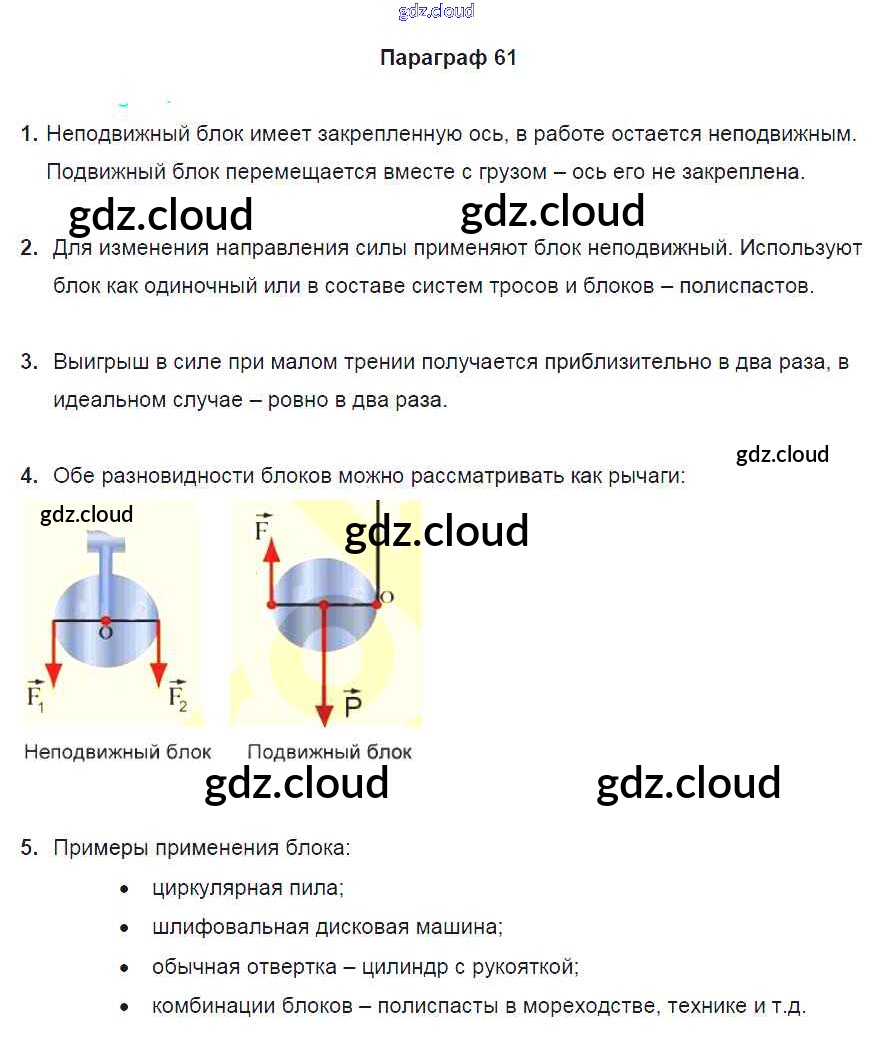 Ответ на задание §61 Учебник Физика за 7 (седьмой) класс Перышкин Вертикаль 2016
