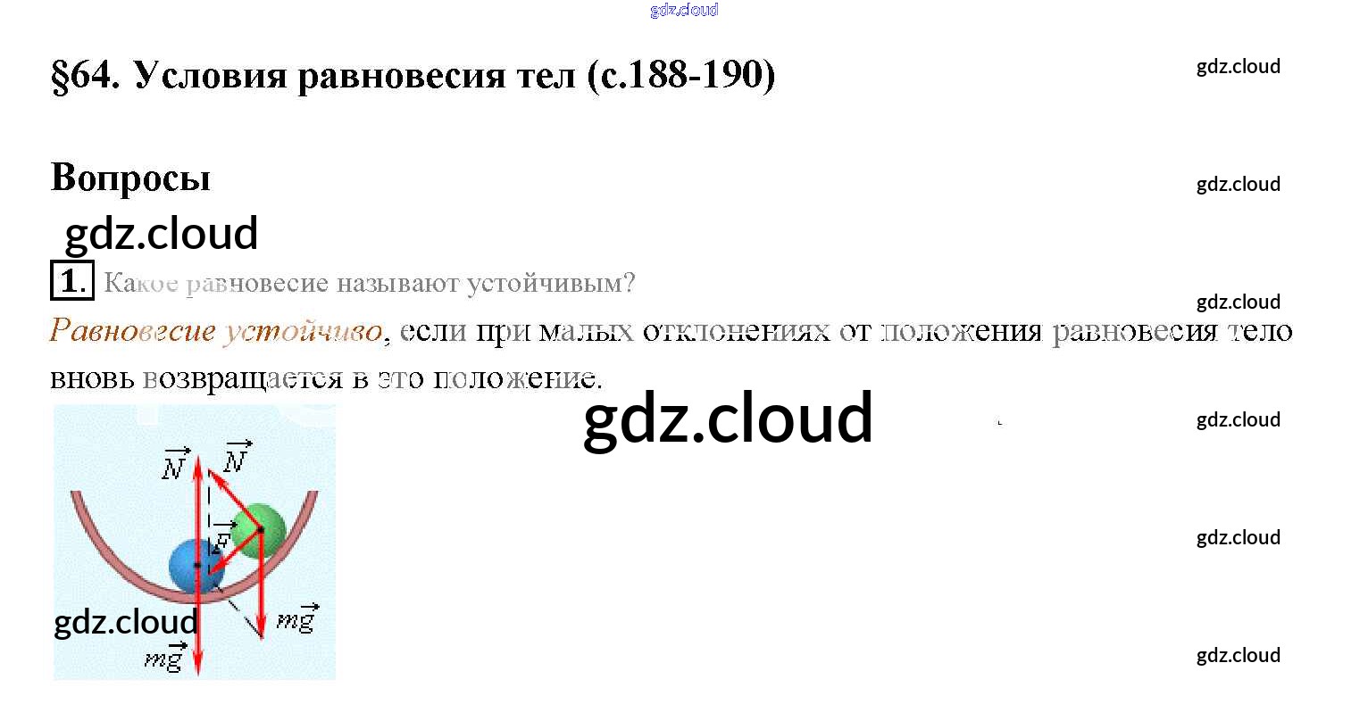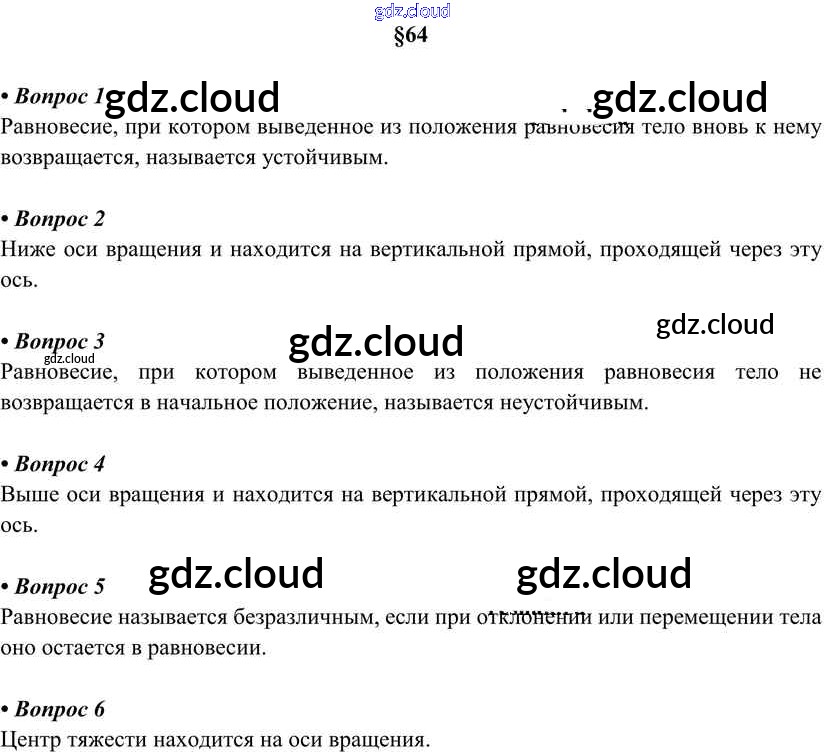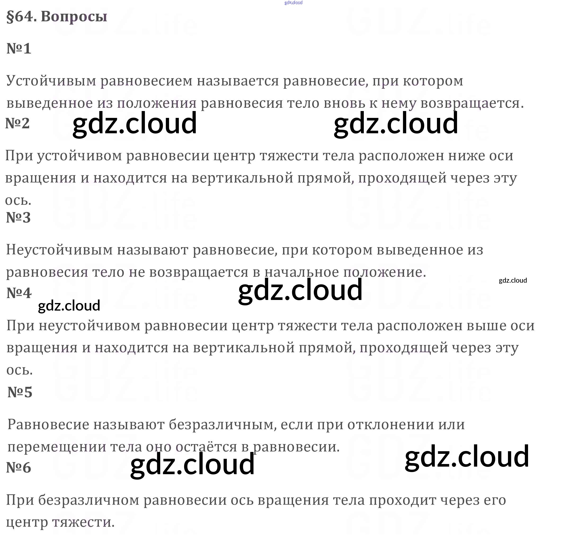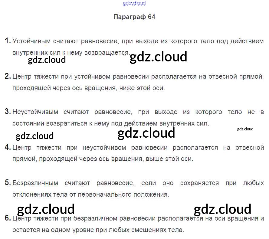 Ответ на задание §64 Учебник Физика за 7 (седьмой) класс Перышкин Вертикаль 2016