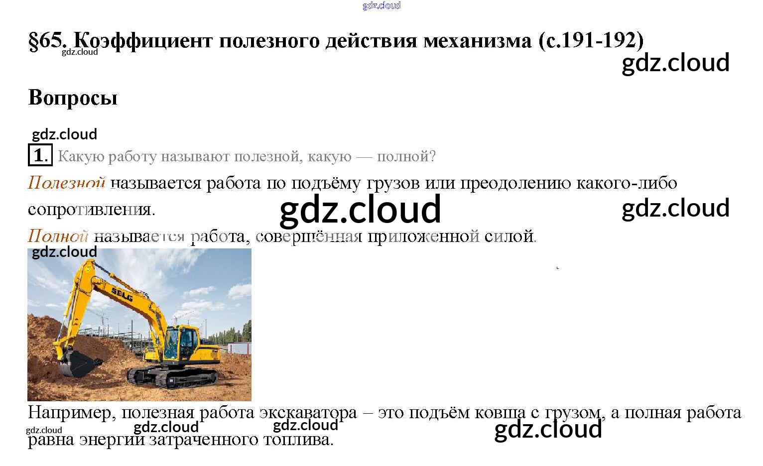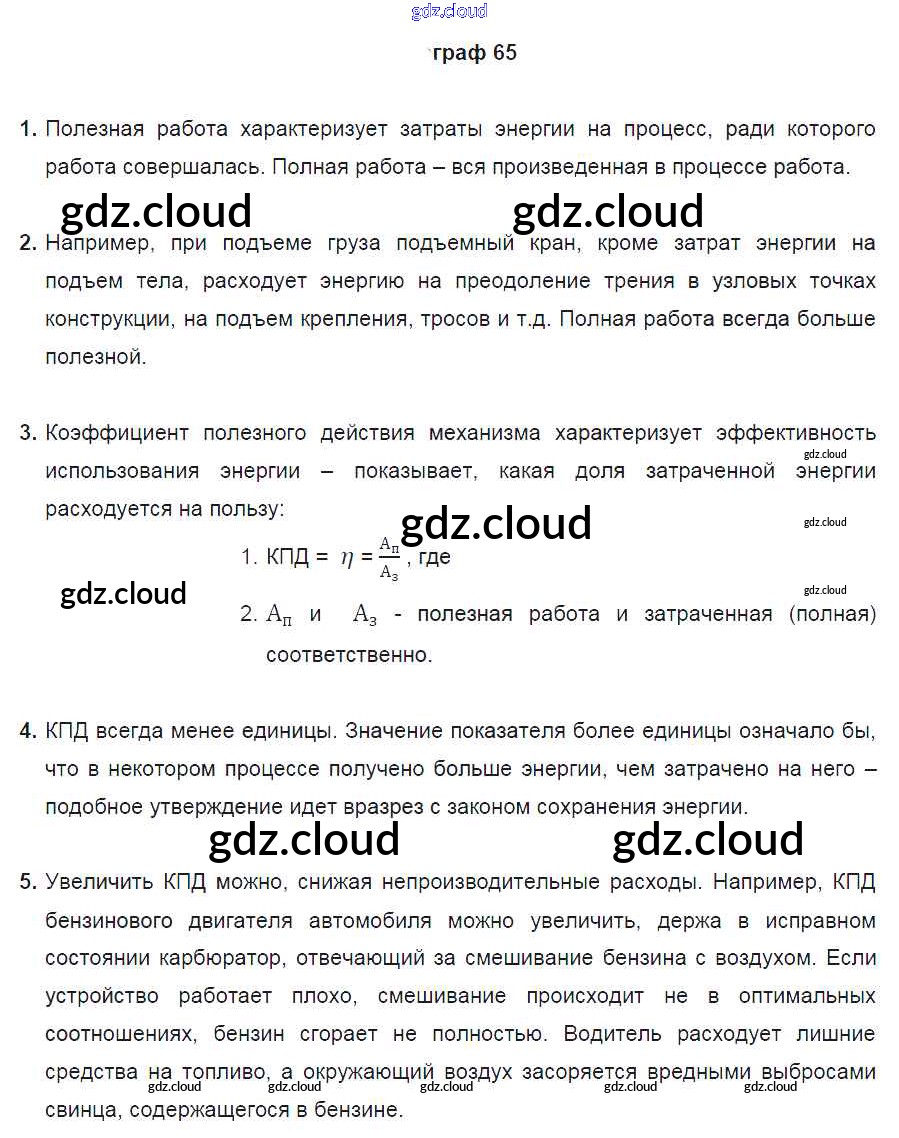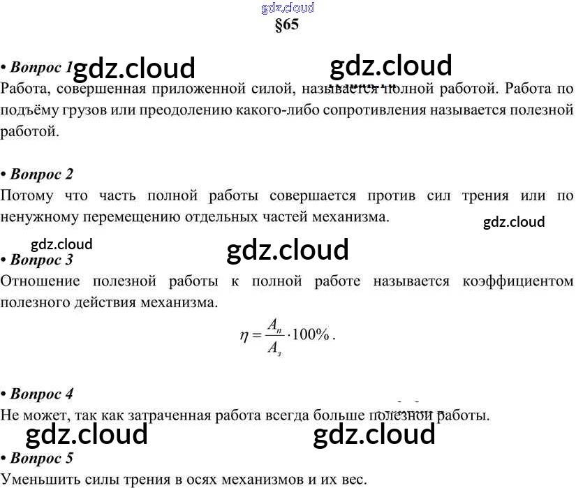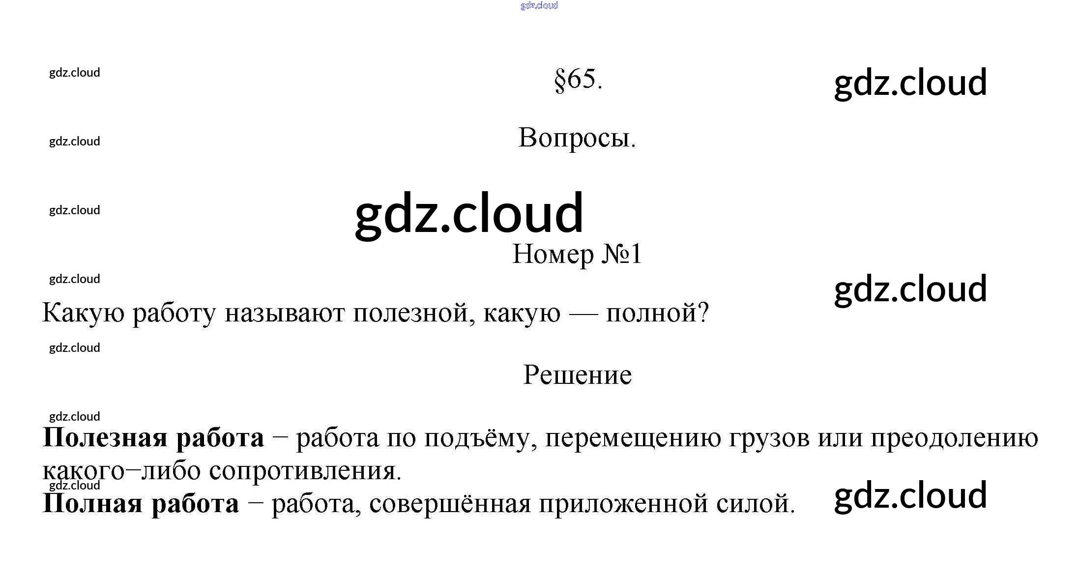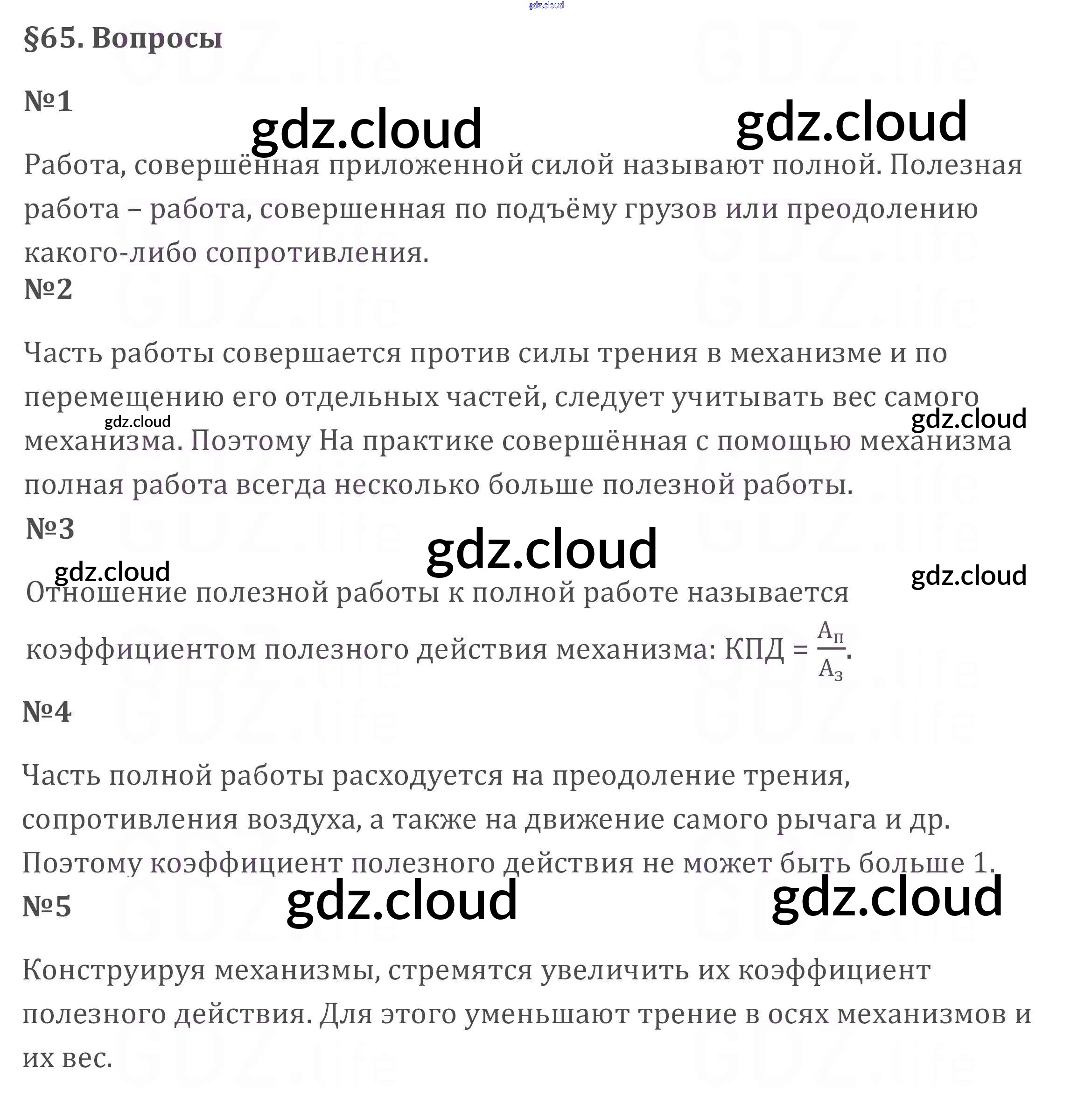 Ответ на задание §65 Учебник Физика за 7 (седьмой) класс Перышкин Вертикаль 2016