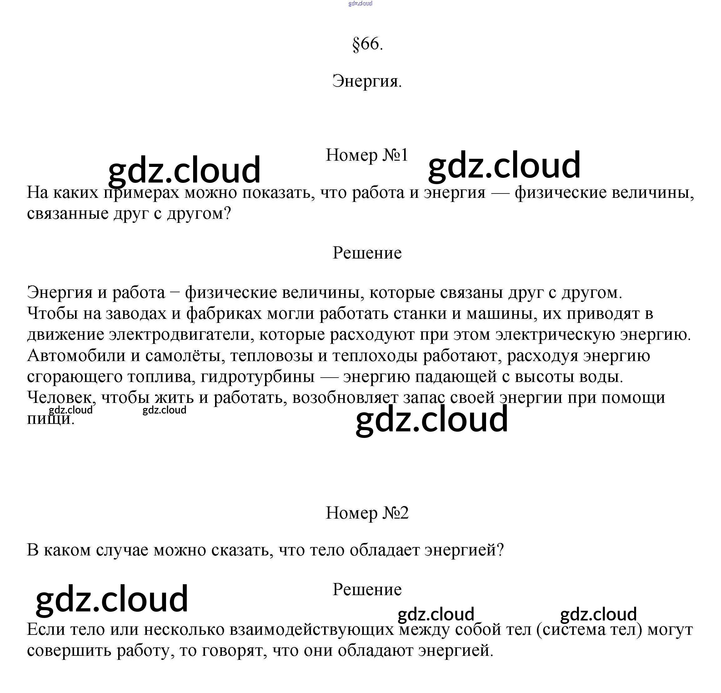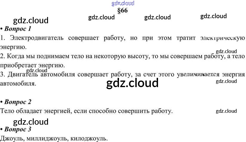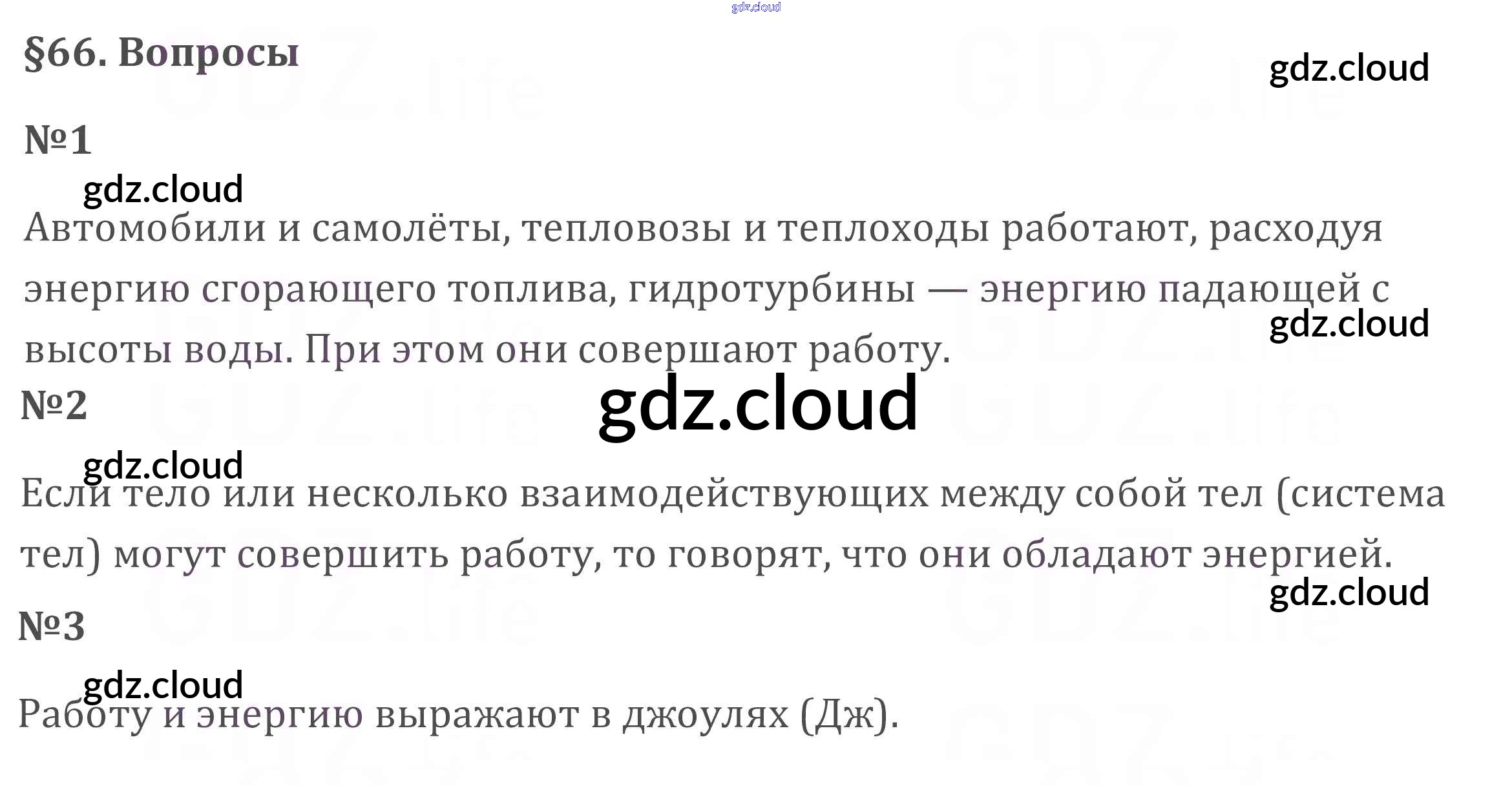 Ответ на задание §66 Учебник Физика за 7 (седьмой) класс Перышкин Вертикаль 2016