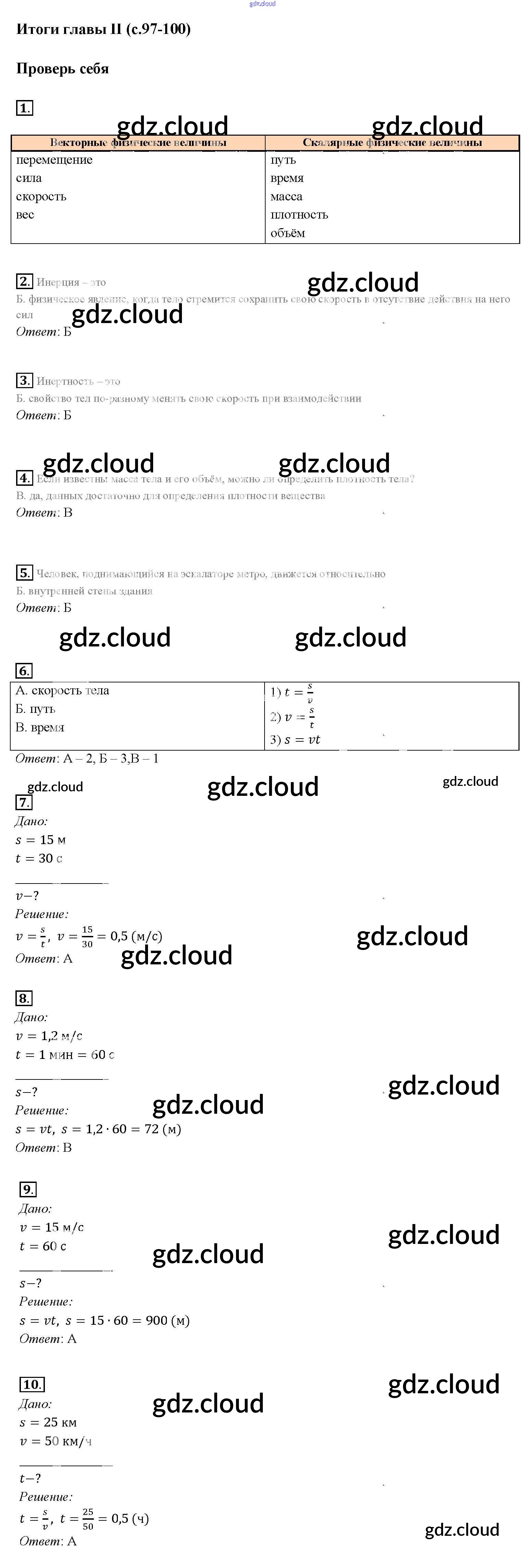 Проверь себя Ответы к новому изданию (бело-красный учебник) по Физике 7 класс Учебник Перышкин Вертикаль Дрофа