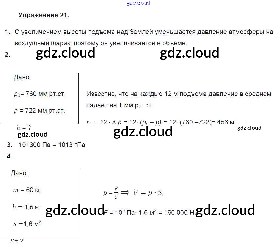 Ответ на задание 21 Учебник Физика за 7 (седьмой) класс Перышкин Вертикаль 2016