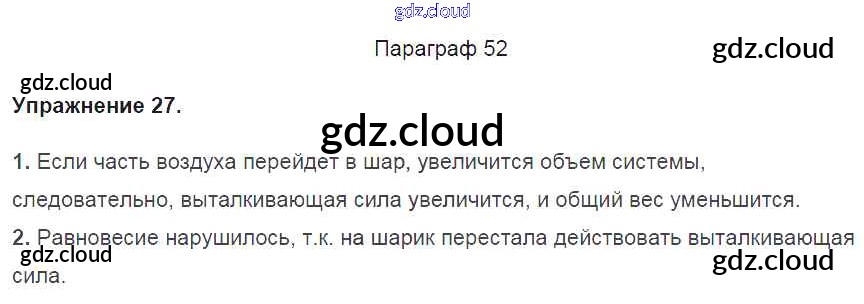 Ответ на задание 27 Учебник Физика за 7 (седьмой) класс Перышкин Вертикаль 2016