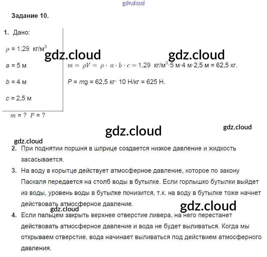 Ответ на задание 10 Учебник Физика за 7 (седьмой) класс Перышкин Вертикаль 2016