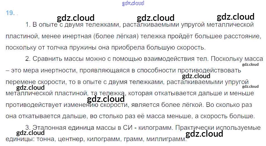 Ответ на задание §19 Учебник Физика за 7 (седьмой) класс Перышкин Вертикаль 2016