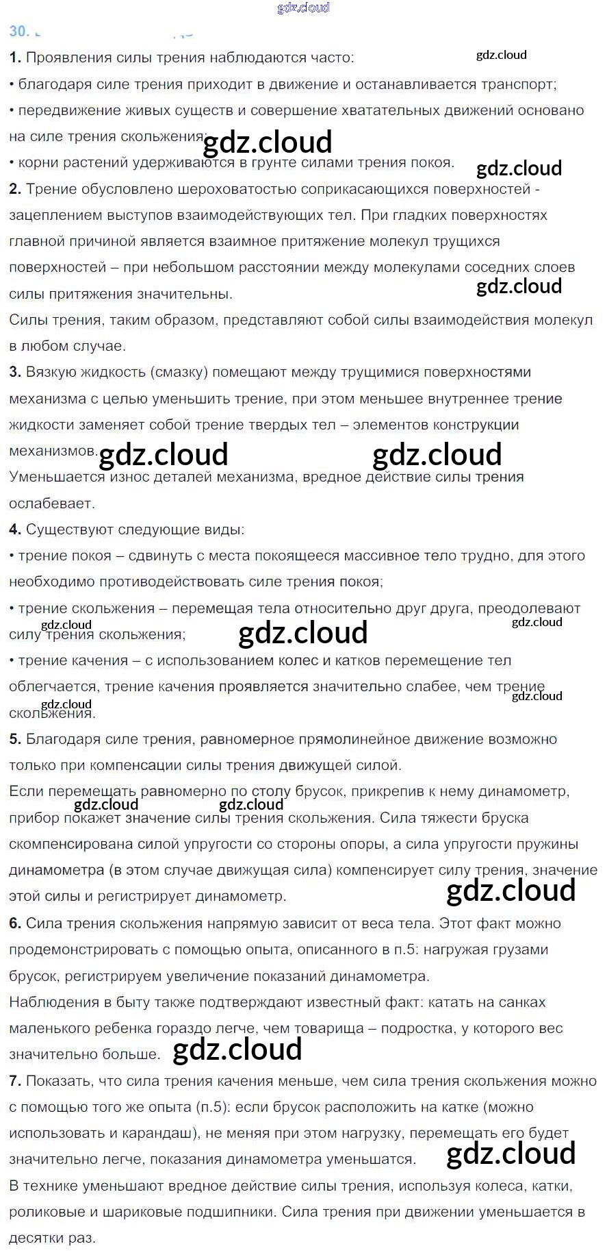 Ответ на задание §30 Учебник Физика за 7 (седьмой) класс Перышкин Вертикаль 2016