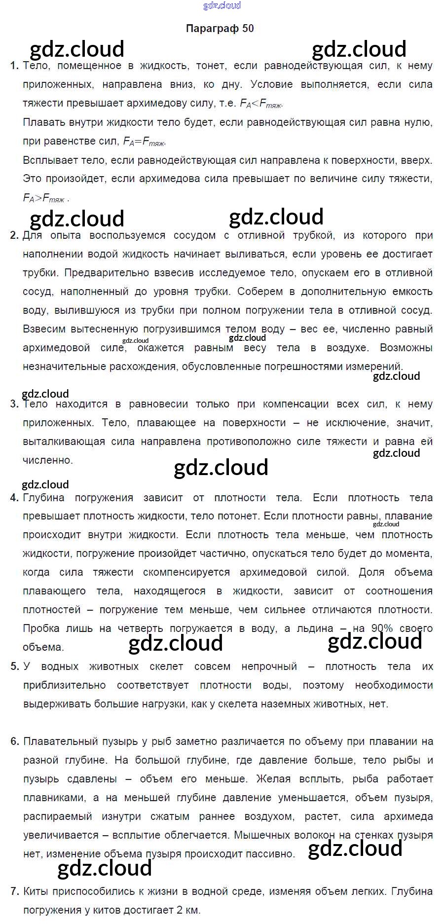 Ответ на задание §50 Учебник Физика за 7 (седьмой) класс Перышкин Вертикаль 2016