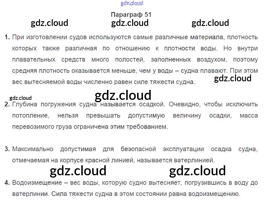 Ответ на задание §51 Учебник Физика за 7 (седьмой) класс Перышкин Вертикаль 2016
