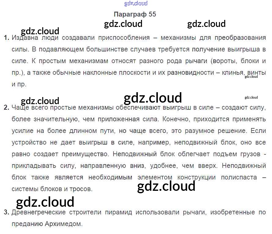 Ответ на задание §55 Учебник Физика за 7 (седьмой) класс Перышкин Вертикаль 2016