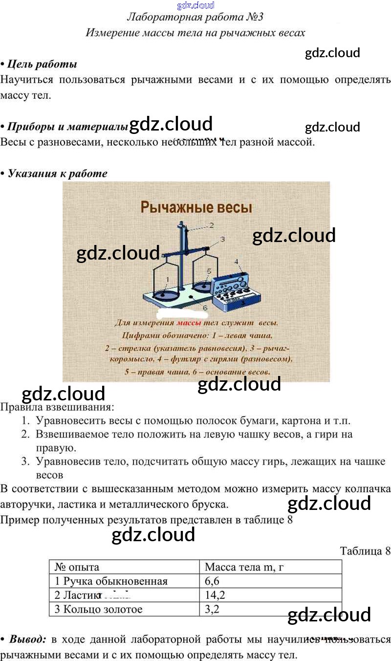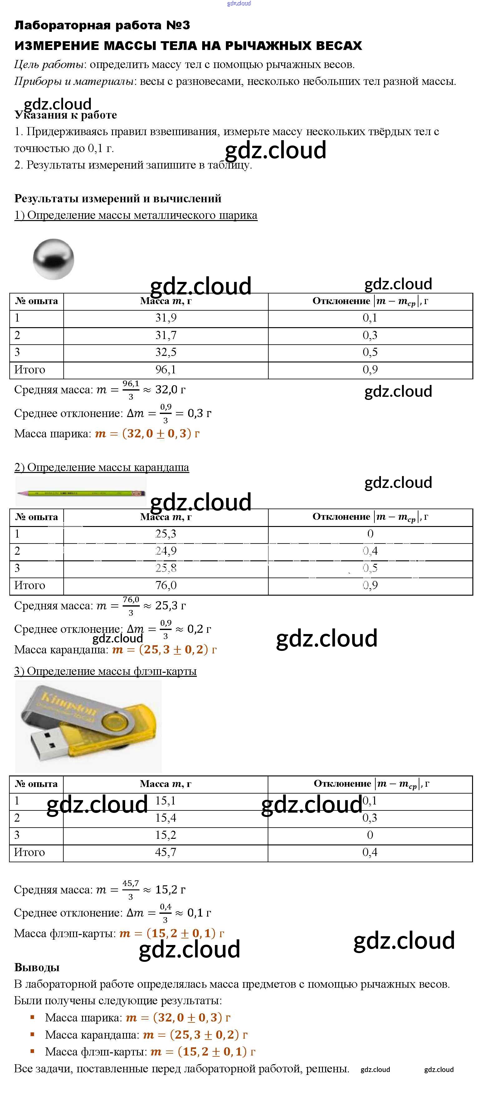 Ответы к лабораторным работам по Физике 7 класс Учебник Перышкин Вертикаль Дрофа