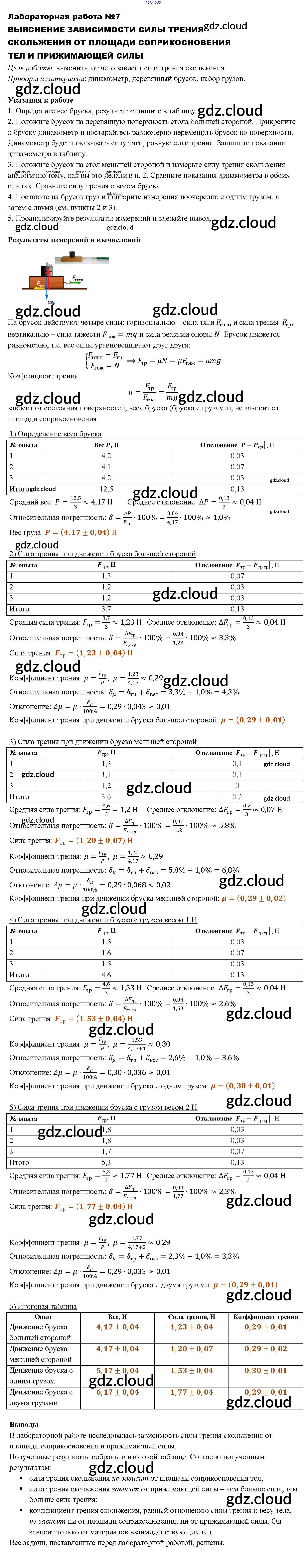 Ответы к лабораторным работам по Физике 7 класс Учебник Перышкин Вертикаль Дрофа
