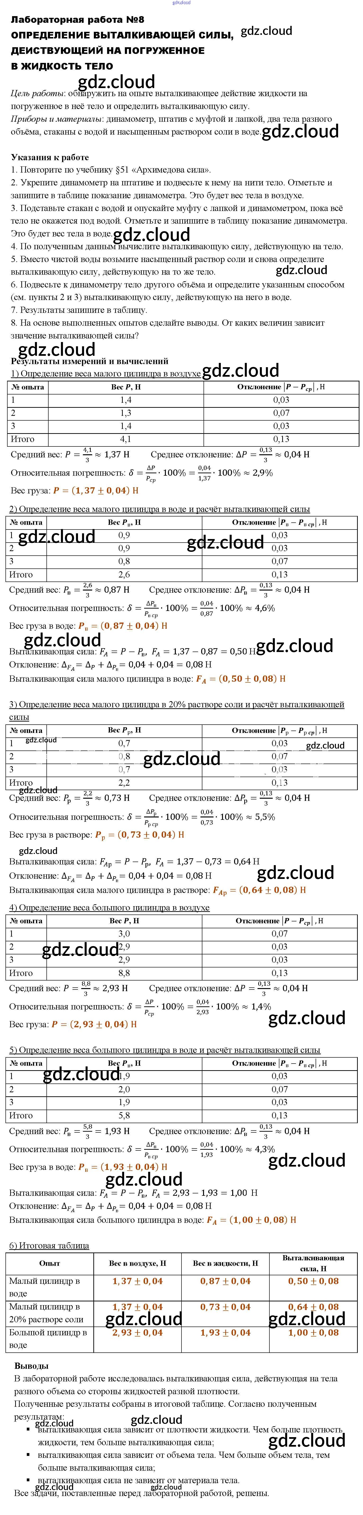 Ответы к лабораторным работам по Физике 7 класс Учебник Перышкин Вертикаль Дрофа