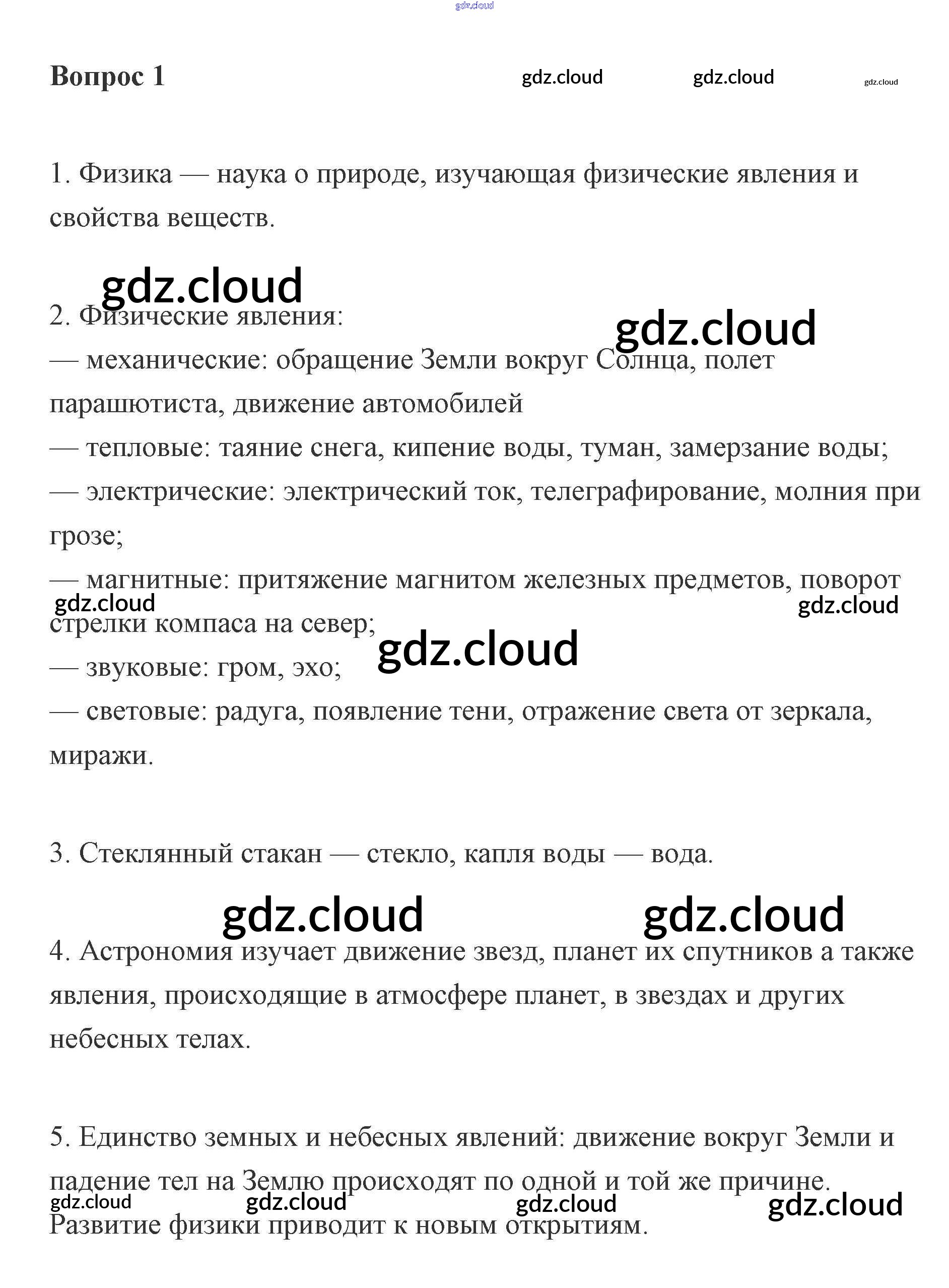Ответы к вопросам по Физике 7 класс Учебник Пурышева Дрофа