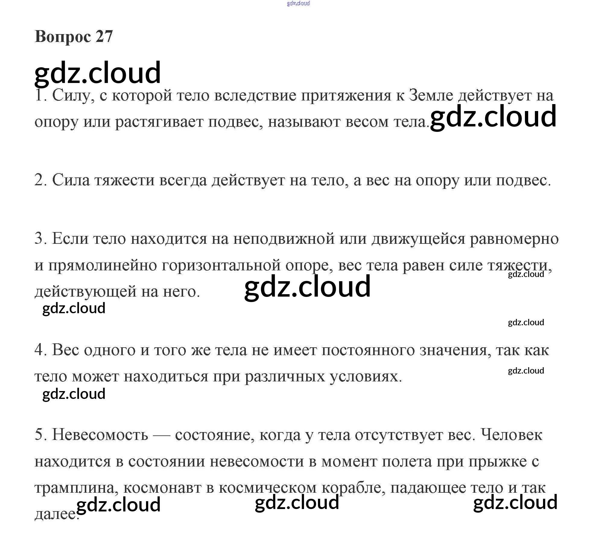 Ответ на задание 27 Учебник Физика за 7 (седьмой) класс Пурышева, Важеевская 2011 ФГОС онлайн и без номера телефона.