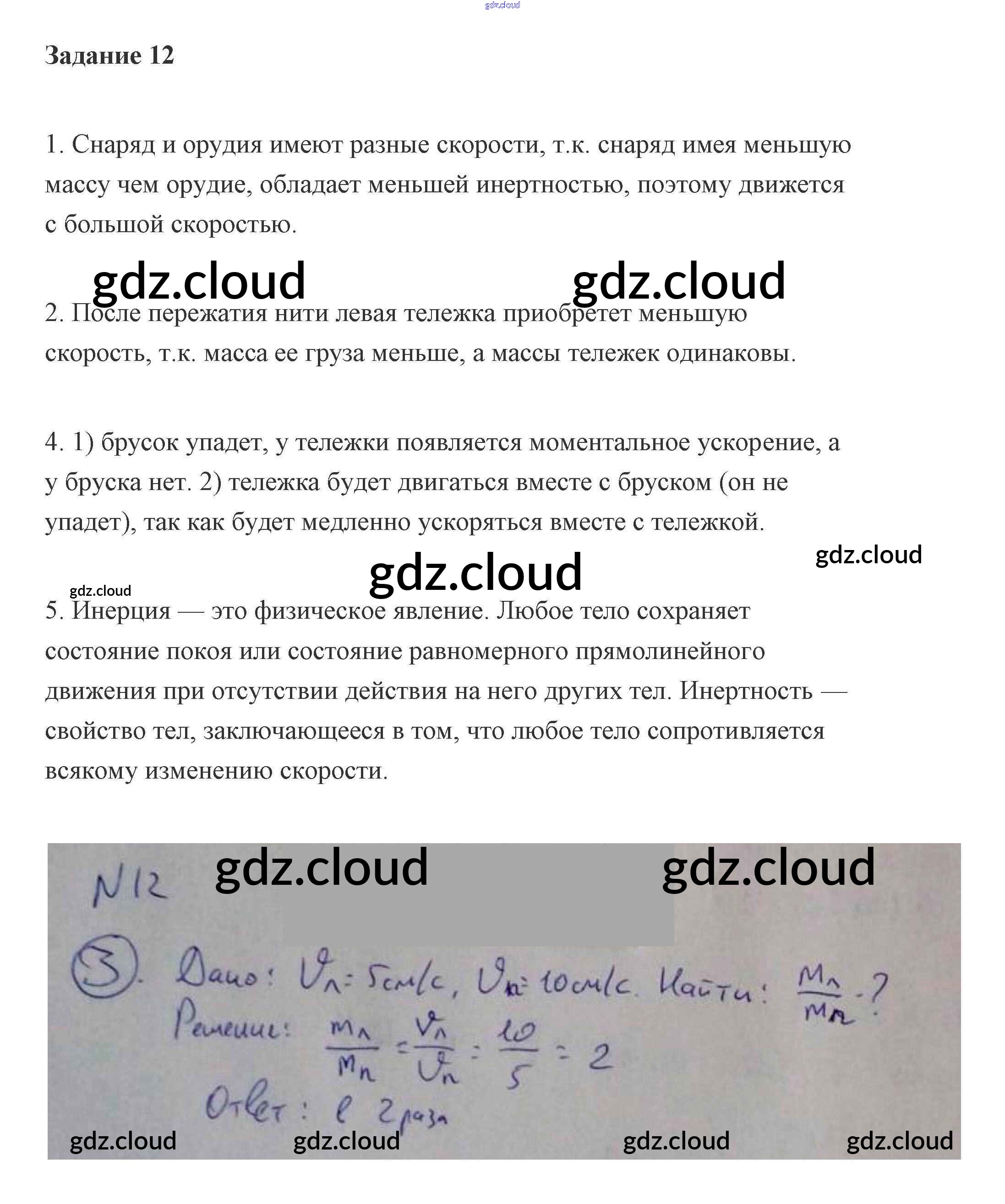 Ответ на задание 12 Учебник Физика за 7 (седьмой) класс Пурышева, Важеевская 2011 ФГОС онлайн и без номера телефона.