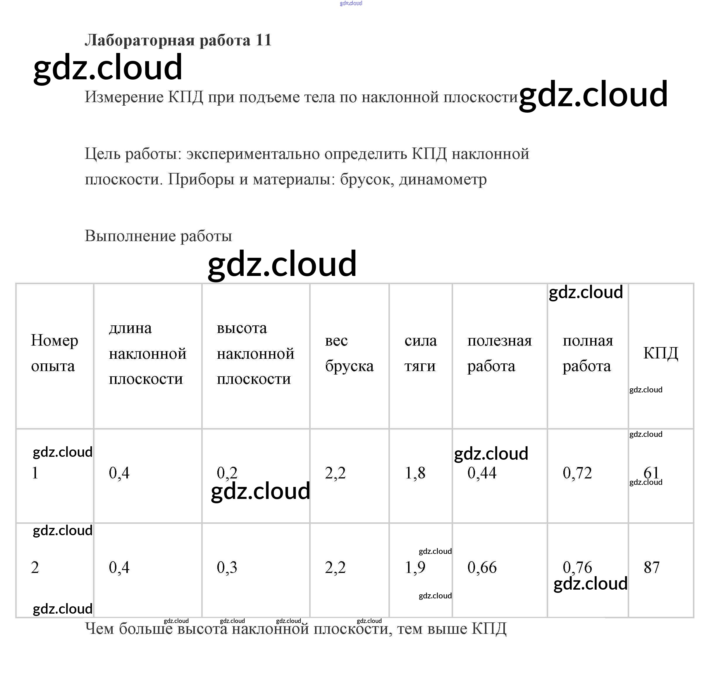 Ответы к лабораторным работам по Физике 7 класс Учебник Пурышева Дрофа
