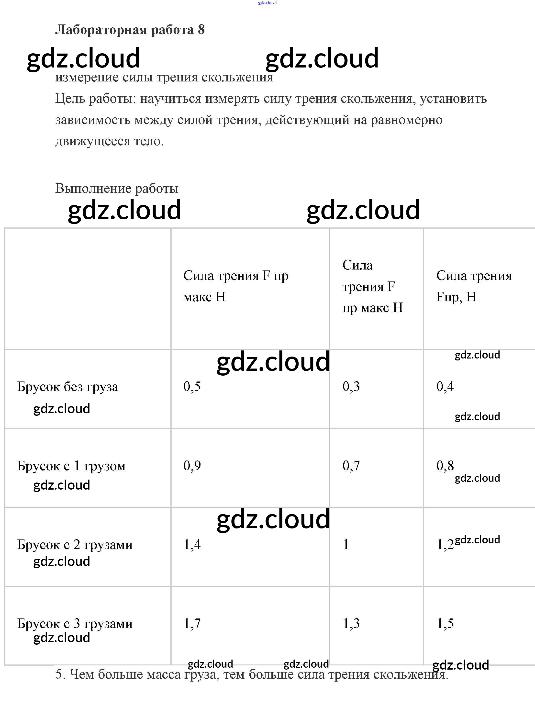 Ответы к лабораторным работам по Физике 7 класс Учебник Пурышева Дрофа
