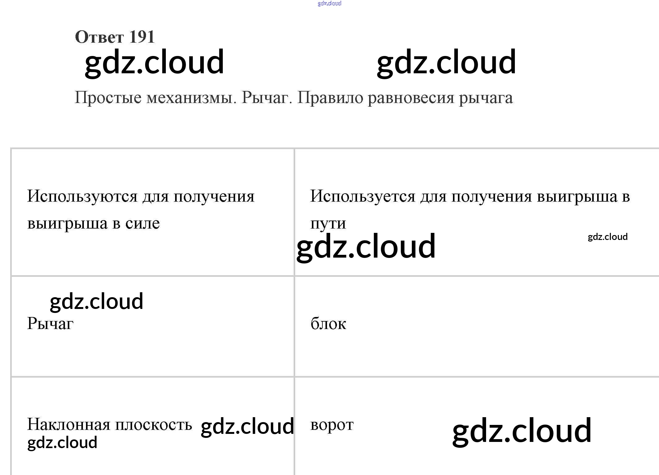 Ответ на задание 191 Рабочая тетрадь Физика за 7 (седьмой) класс Пурышева, Важеевская 2018